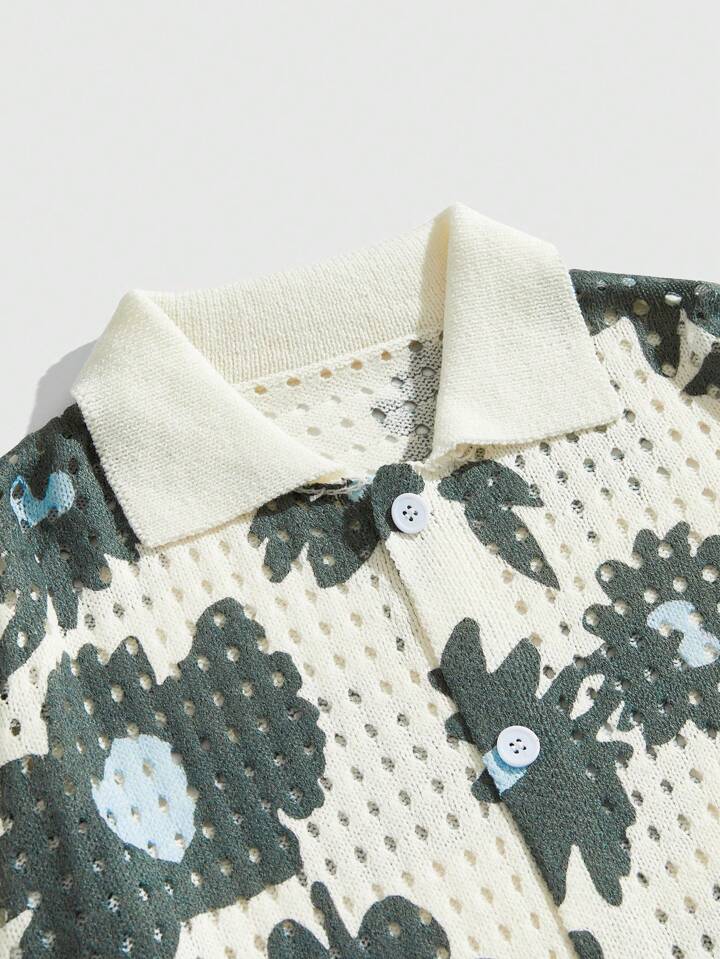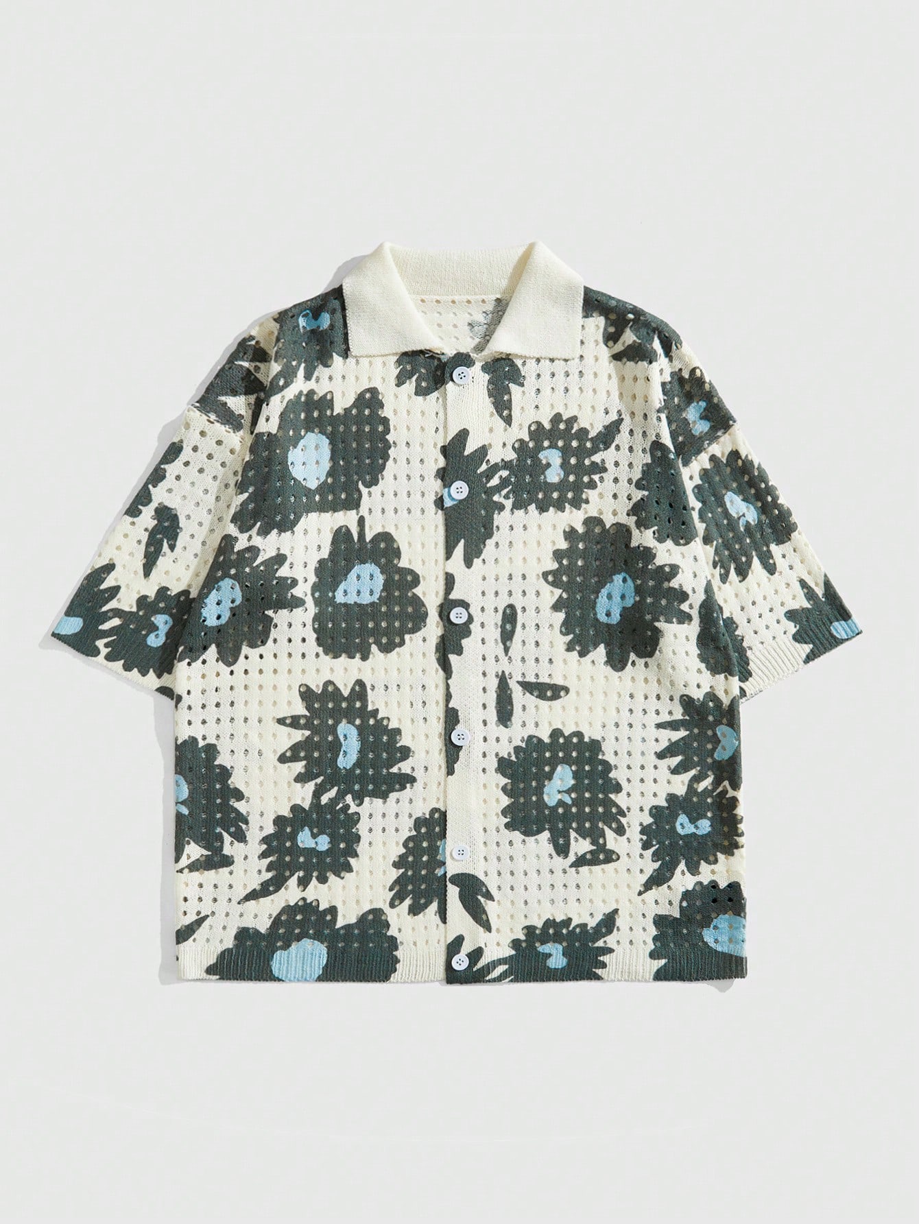 Casual Men's Floral Print Loose Knit Shirt Short Sleeve Top, Vacation