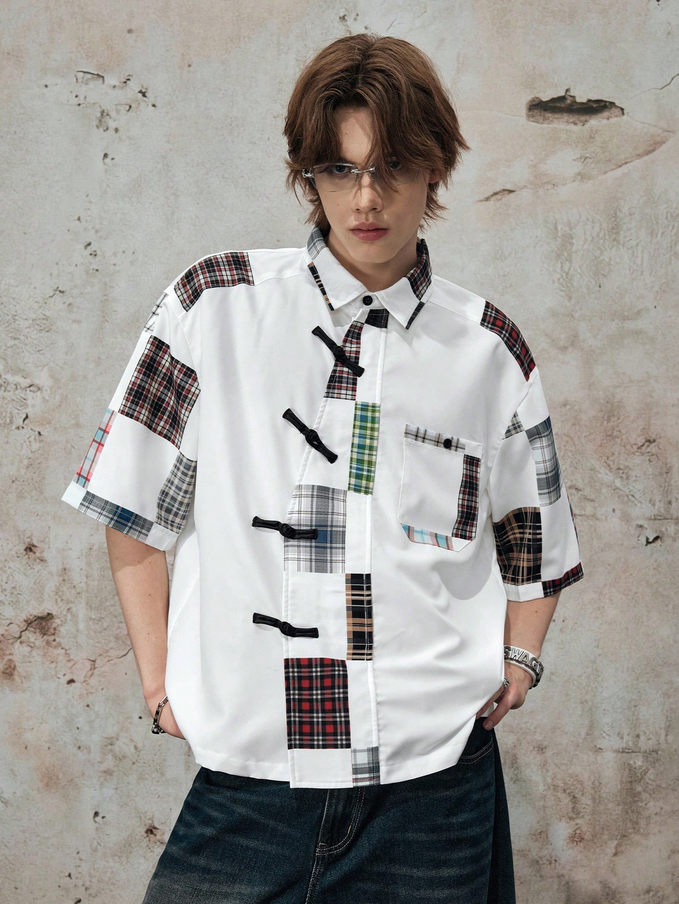 Casual Men's Oblique Placket Chinese Style Button-Up Shirt