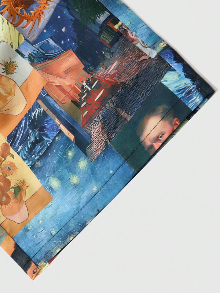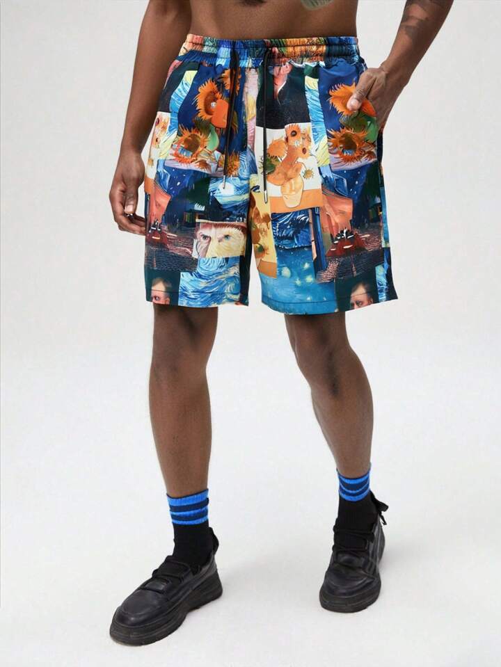 Casual Men's Vintage Painting Floral Woven Shorts, Suitable For Everyday Wear, Spring/Summer Vacation