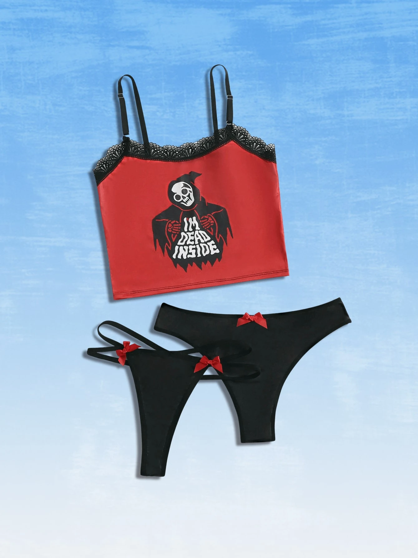 Catsneeze 3pack Skeleton & Letter Print Lingerie Set