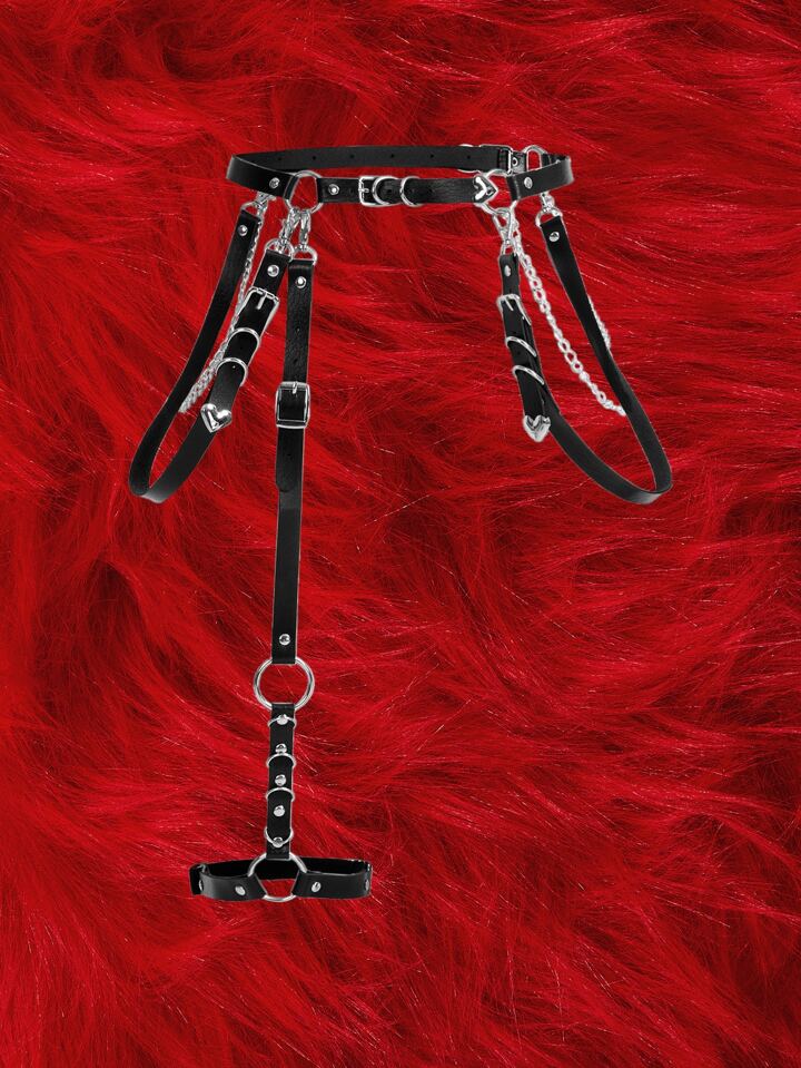 Chain Decor Square Buckle Garter Harness Belt
