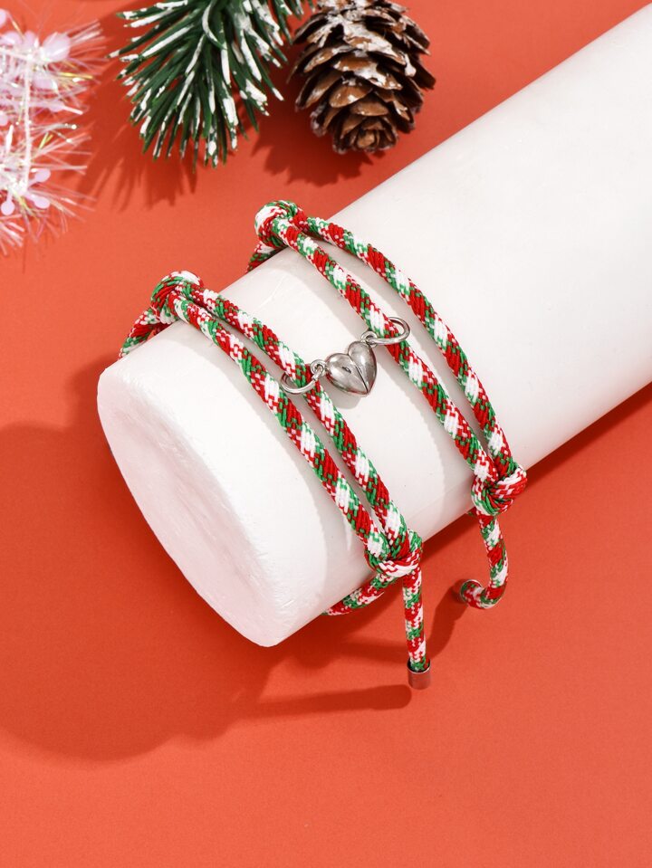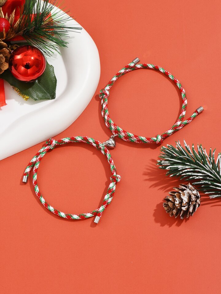 Christmas 2pcs Magnetic Heart Charm Bracelet