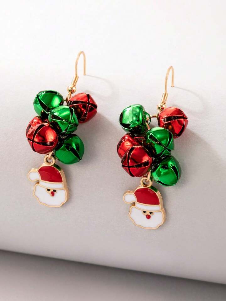 Christmas Bell & Santa Claus Decor Drop Earrings