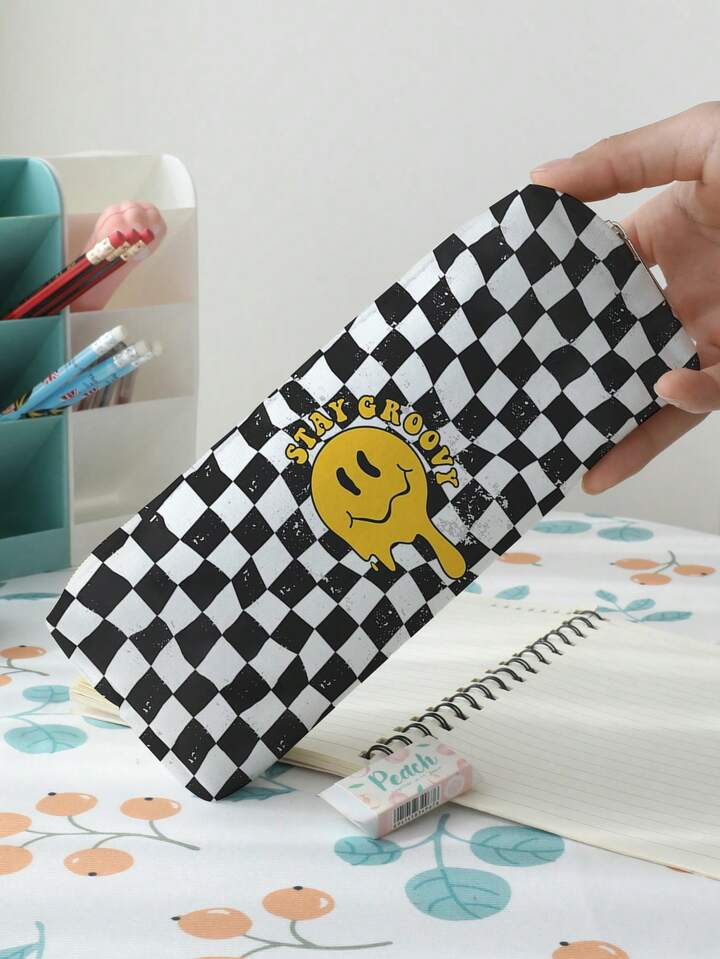 CoCoArtUa Anime Checkerboard Pattern Double-sided Printed Pencil Case