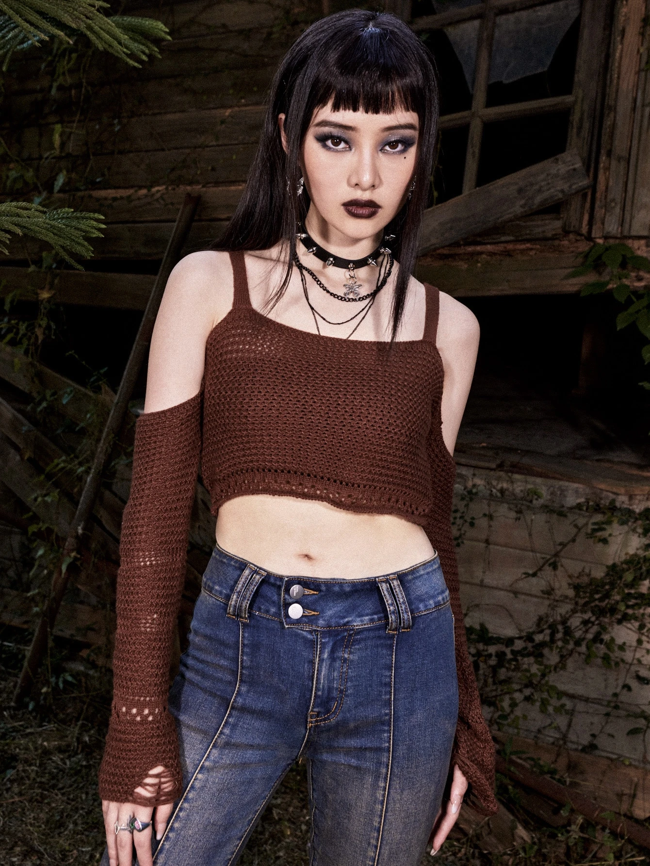 Cold Shoulder Distressed Sweater