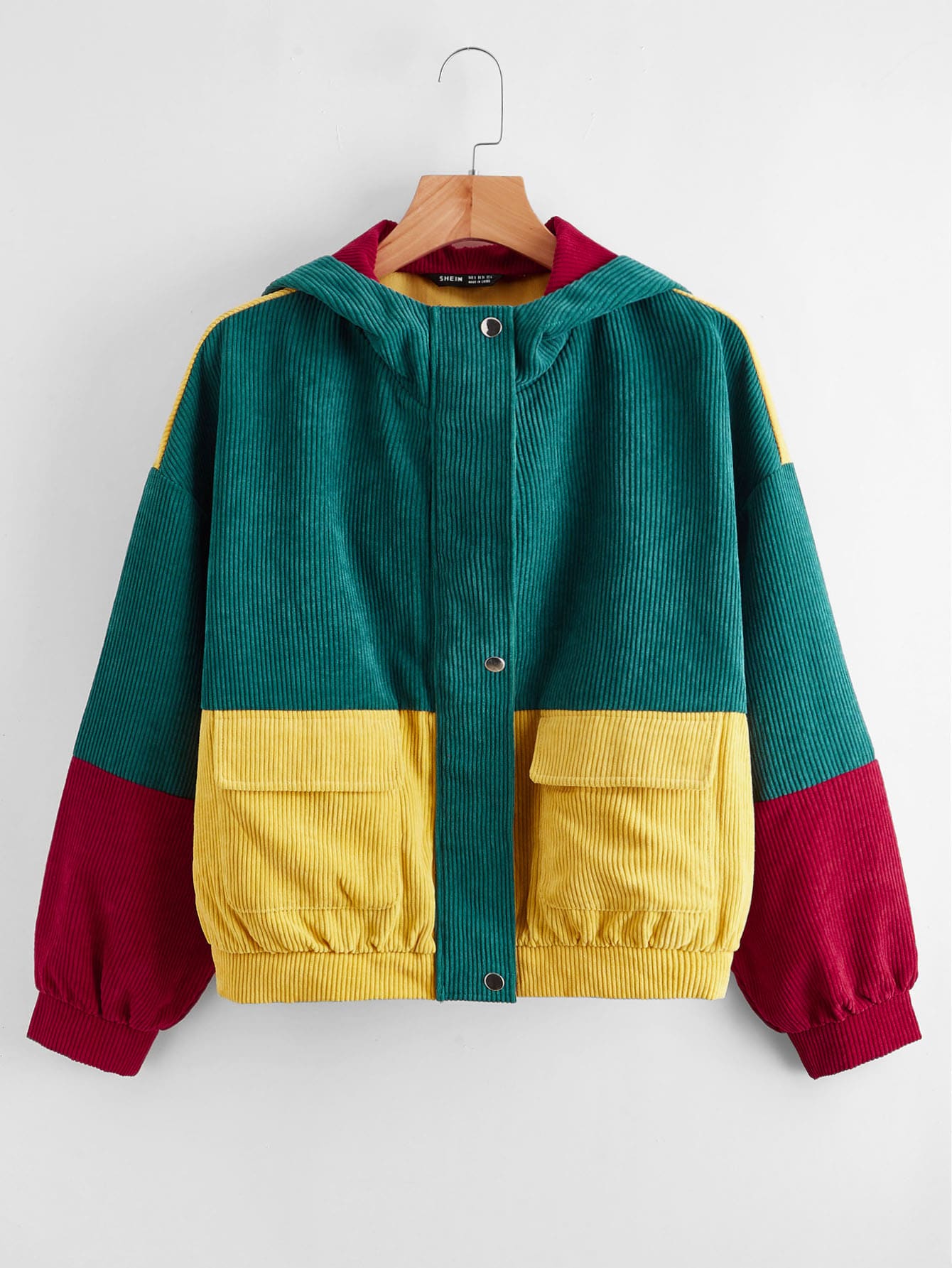 Color Block Zip Up Corduroy Jacket