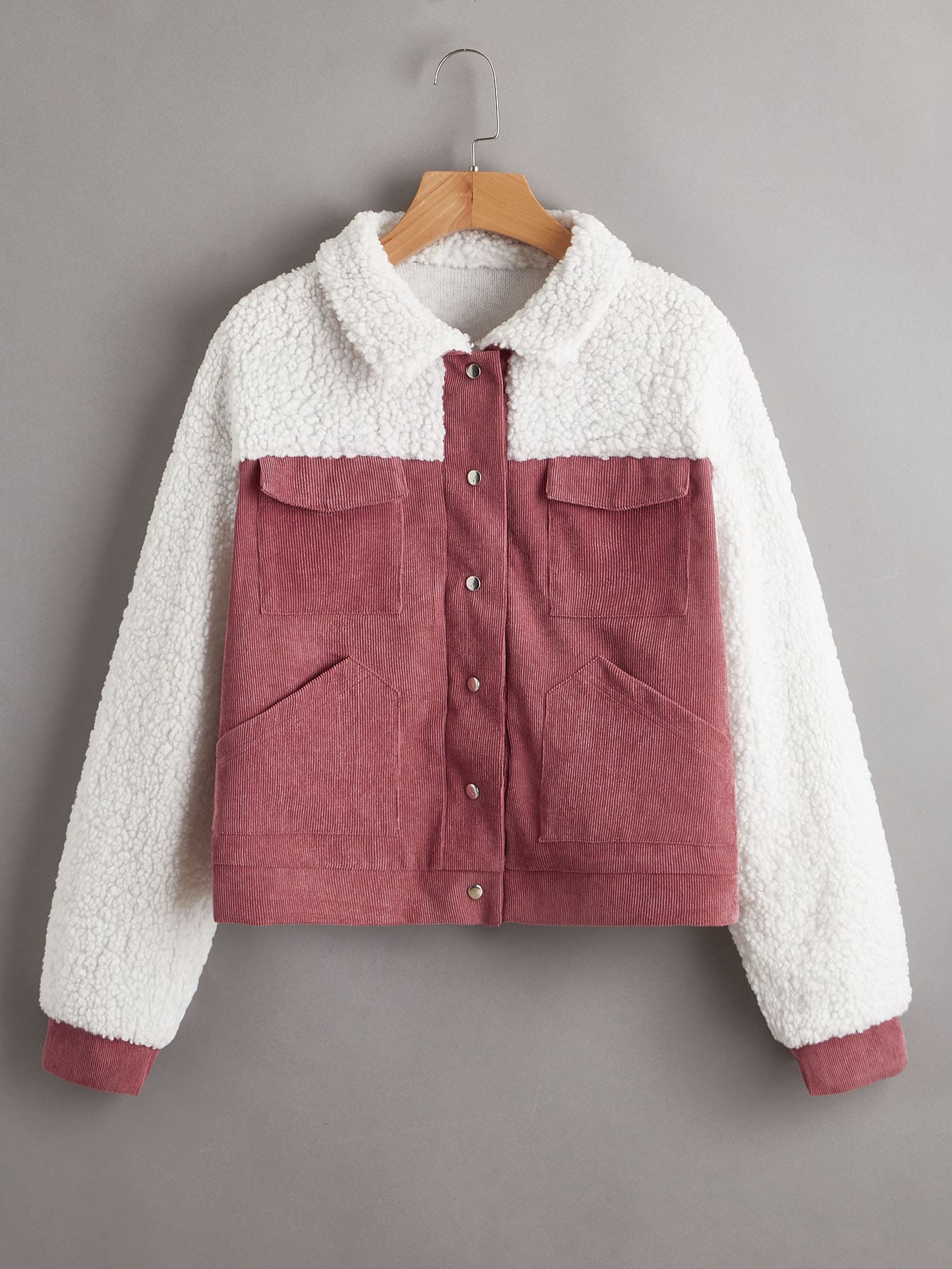 Contrast Faux Shearling Collar Jacket