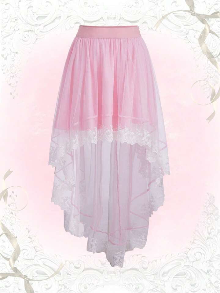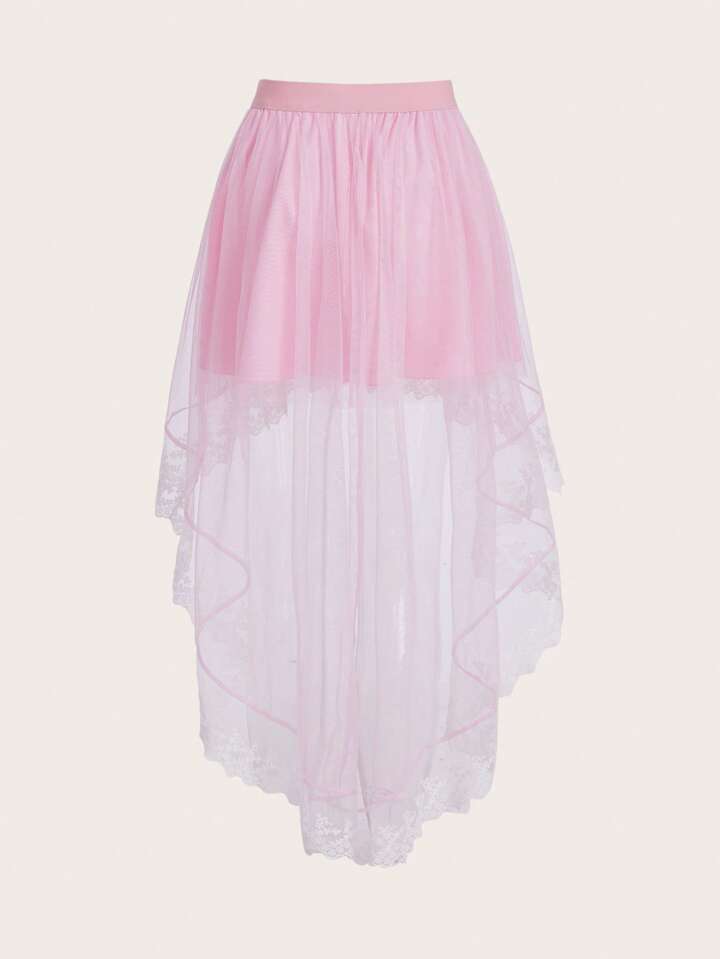 Contrast Lace Asymmetrical Hem Skirt