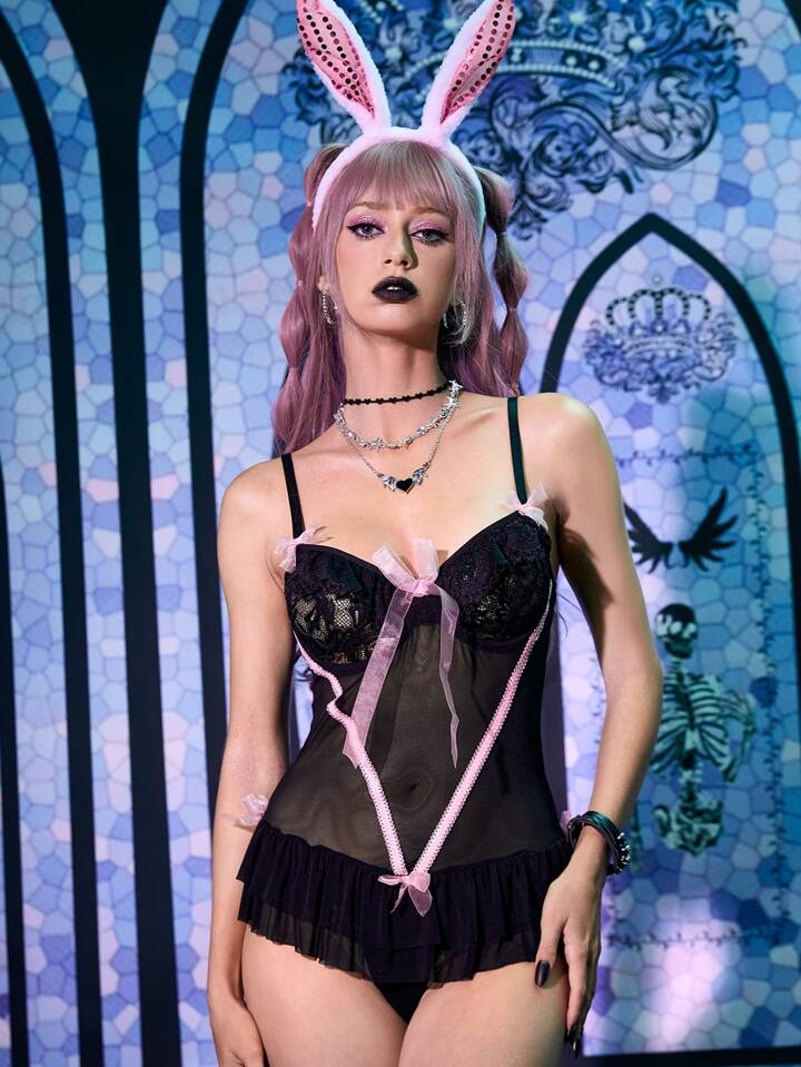 Contrast Lace Bow Decor Ruffle Hem Bralette