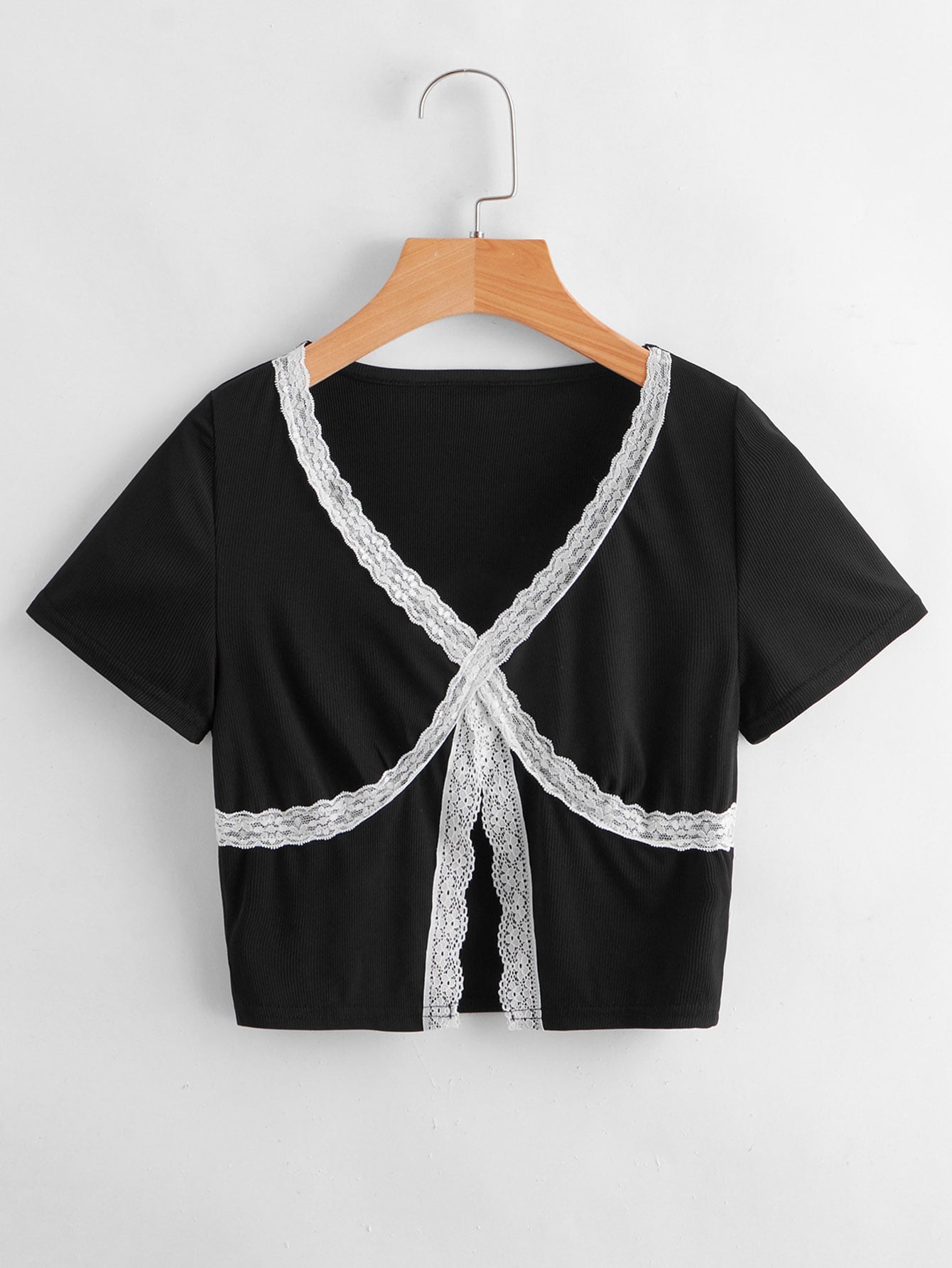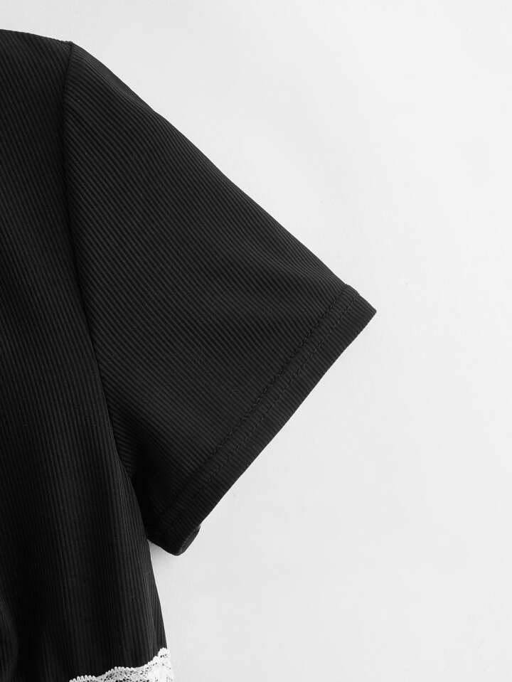 Contrast Lace Cut Out Tee