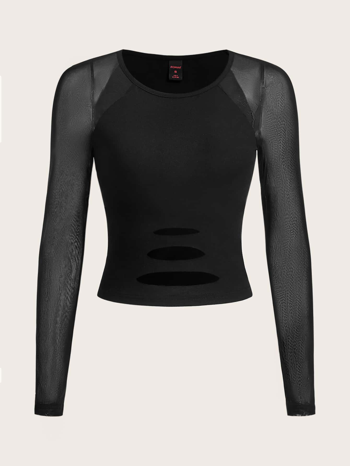 Contrast Mesh Cut Out Raglan Sleeve Crop Top