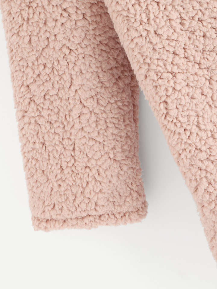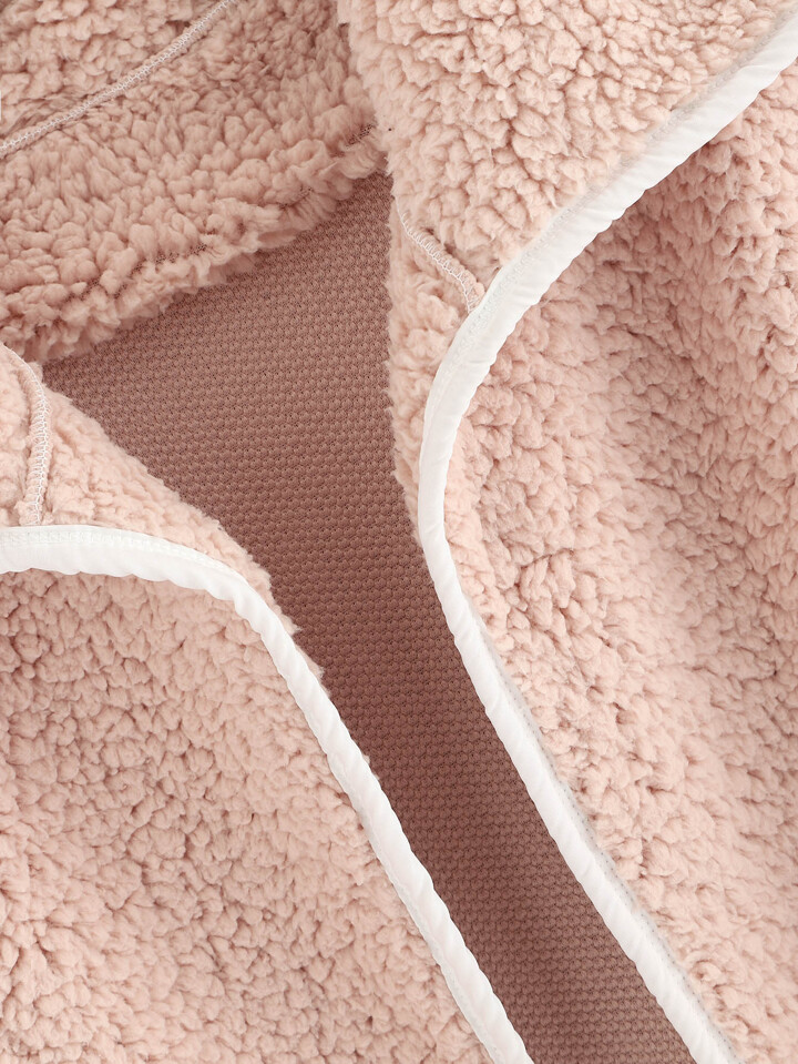 Contrast Trim Waterfall Teddy Coat