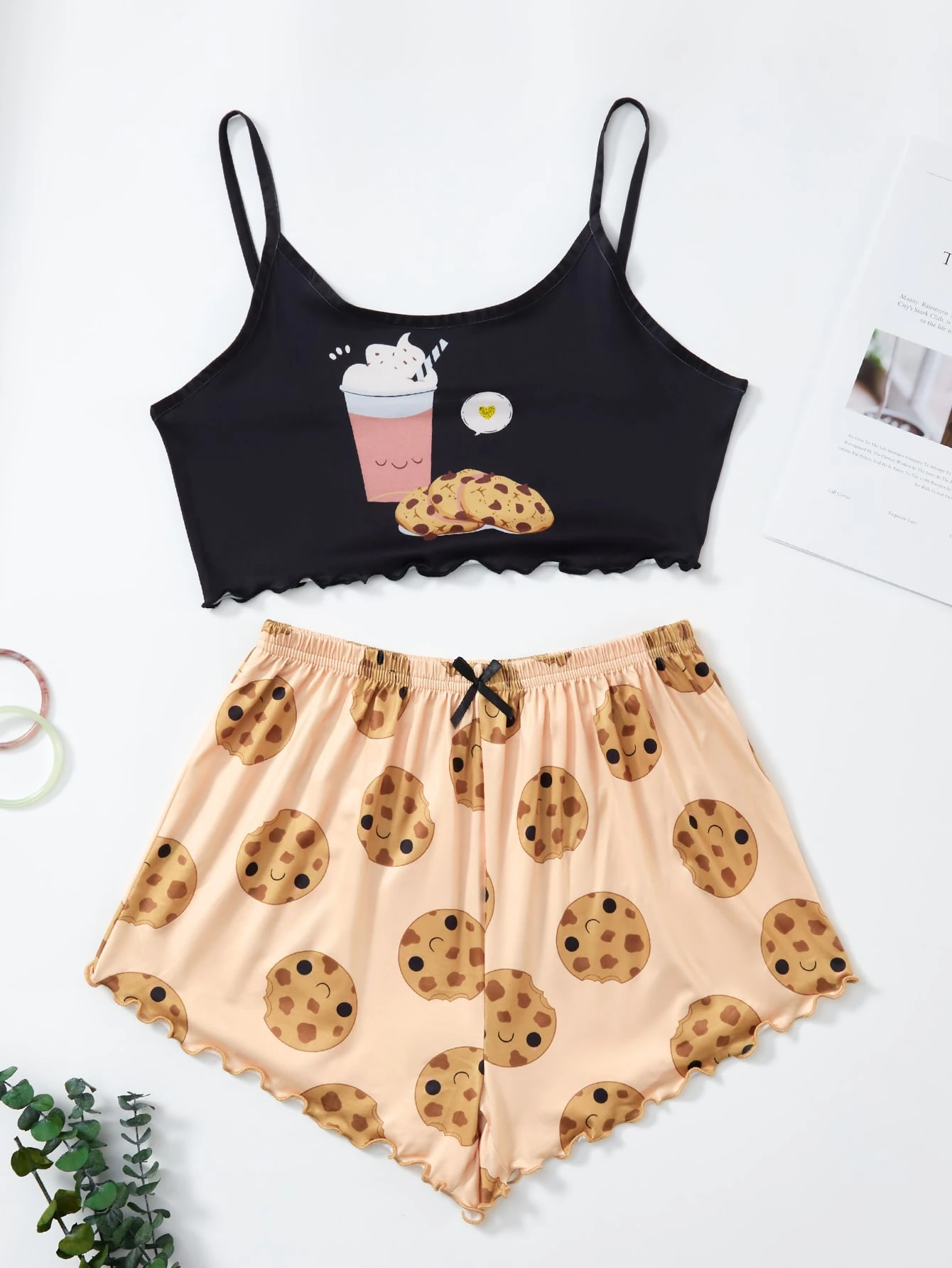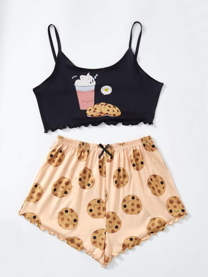 Cookie Print Lettuce Trim Cami PJ Set