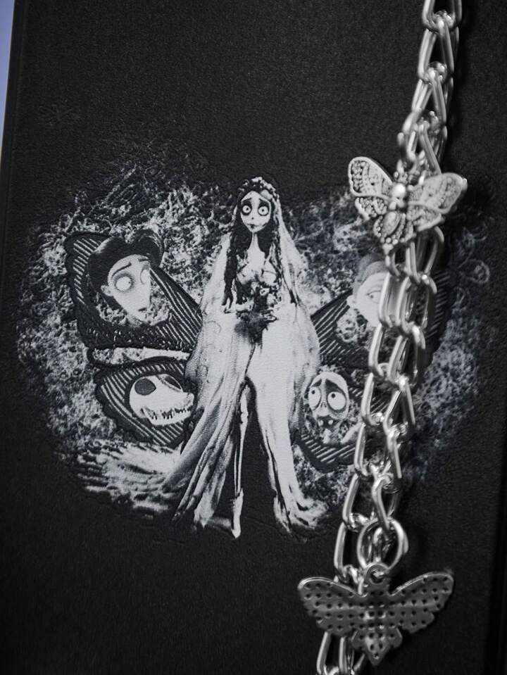 Corpse Bride | ROMWE 1pc Gothic Style Cartoon Character & Butterfly Pattern Chain Decor Black Phone Case, Halloween