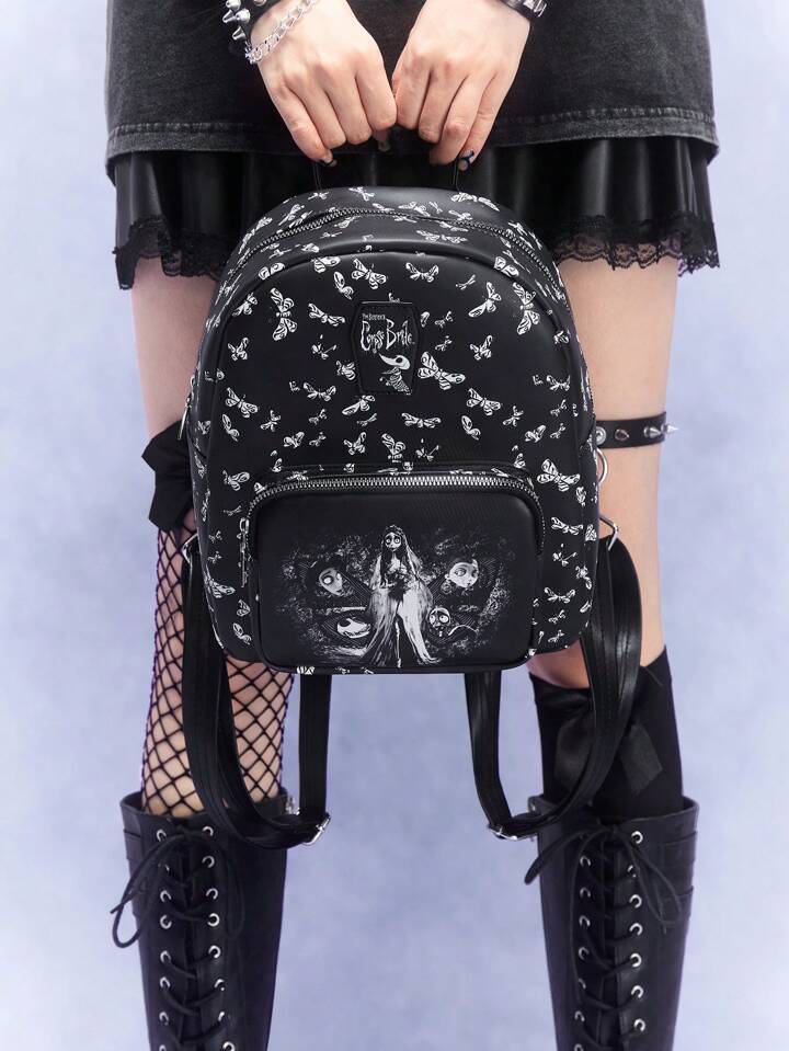 Corpse Bride | ROMWE Cartoon Butterfly Printed Fashion Backpack With Decorative Accents, School, Butterfly Bag
