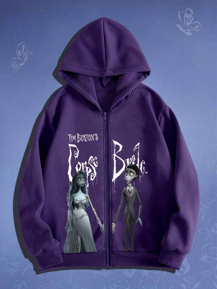 Corpse Bride | ROMWE Men Character Print Zipper Sweatshirt