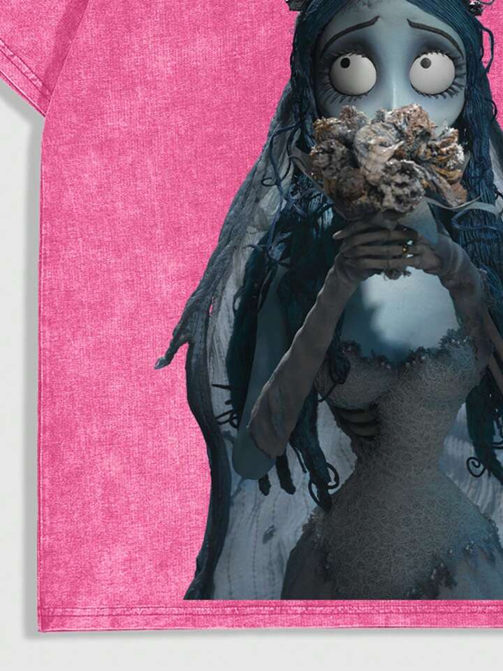 Corpse Bride | ROMWE Men Vintage Wash Portrait Graphic Short Sleeve T-Shirt