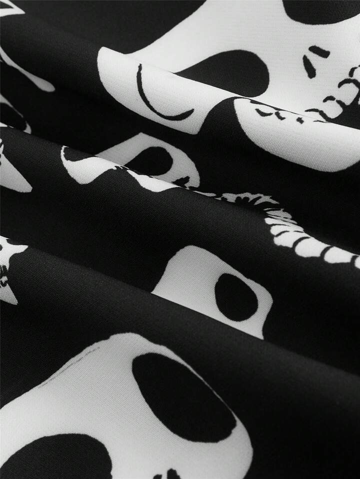 Corpse Bride | ROMWE Palace Cute Square Neckline Logo & Skull Print Puff Sleeve Women's Short Dress, School