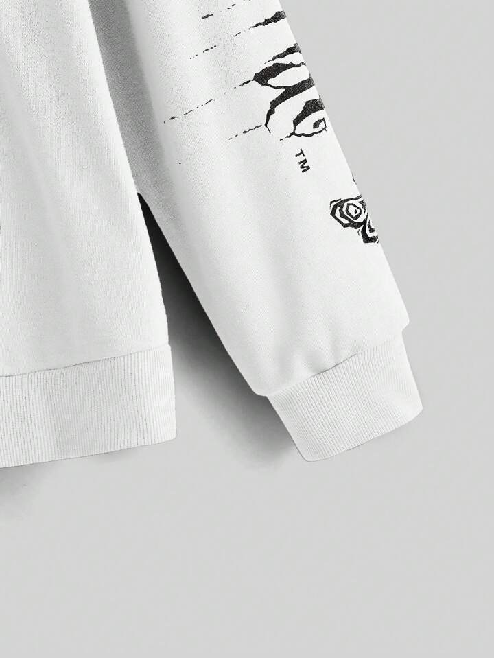 Corpse Bride | ROMWE Plus Size Autumn Casual Cartoon Bride Print Drawstring Hooded Sweatshirt