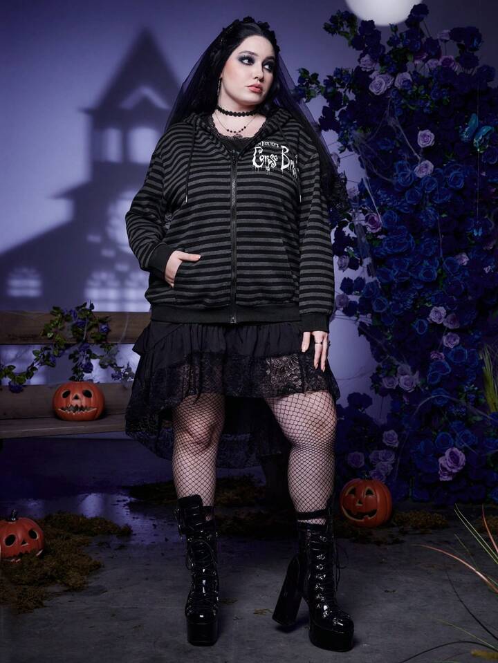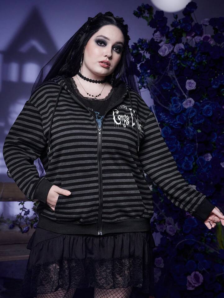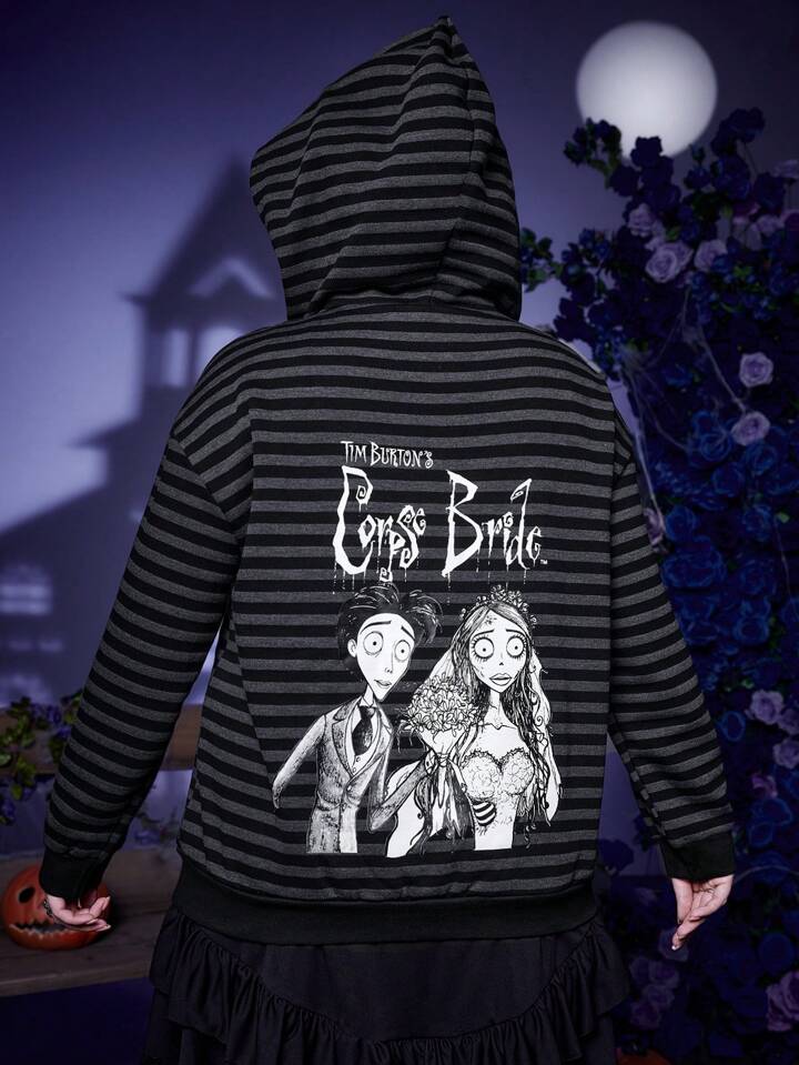 Corpse Bride | ROMWE Plus Striped & Figure Graphic Drop Shoulder Hoodie