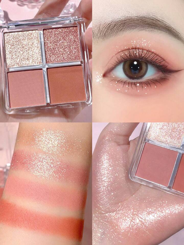 Cosmic Crystal Eyeshadow Quad-Charm School 4-Clolor Matte Glitter Eyeshadow Palette Rose Gold Warm Peach Brown Long Lasting Ultra Pigmented Smooth Blendable Eyeshadow Pink Eyeshadow Brand Beauty Makeup Face Paint Cosmetic For Women Girls Perfect For Winter Ideal For Y2K Fancy Fashion Suitable For Birthday Gift Party Ready Best Color