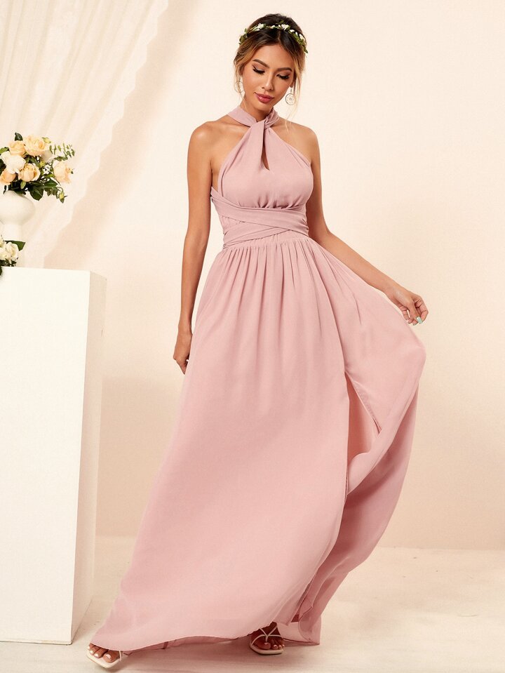 Criss Cross Tie Backless Split Thigh Bridesmaid Dress Elegant Formal Evening Prom Wedding Guest Gown, For Graduation, Dinner Party Dress