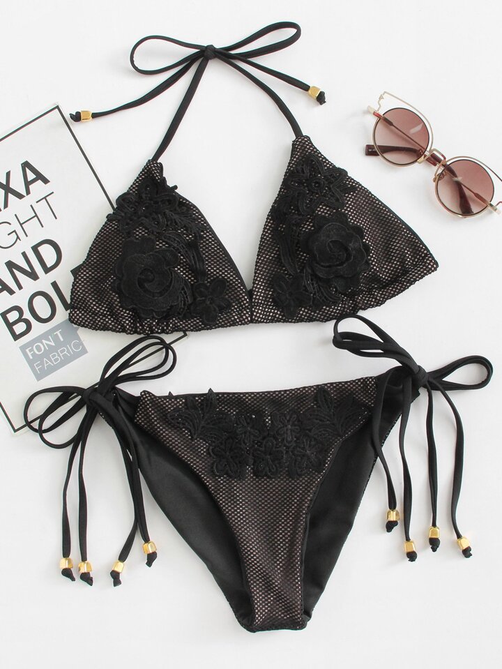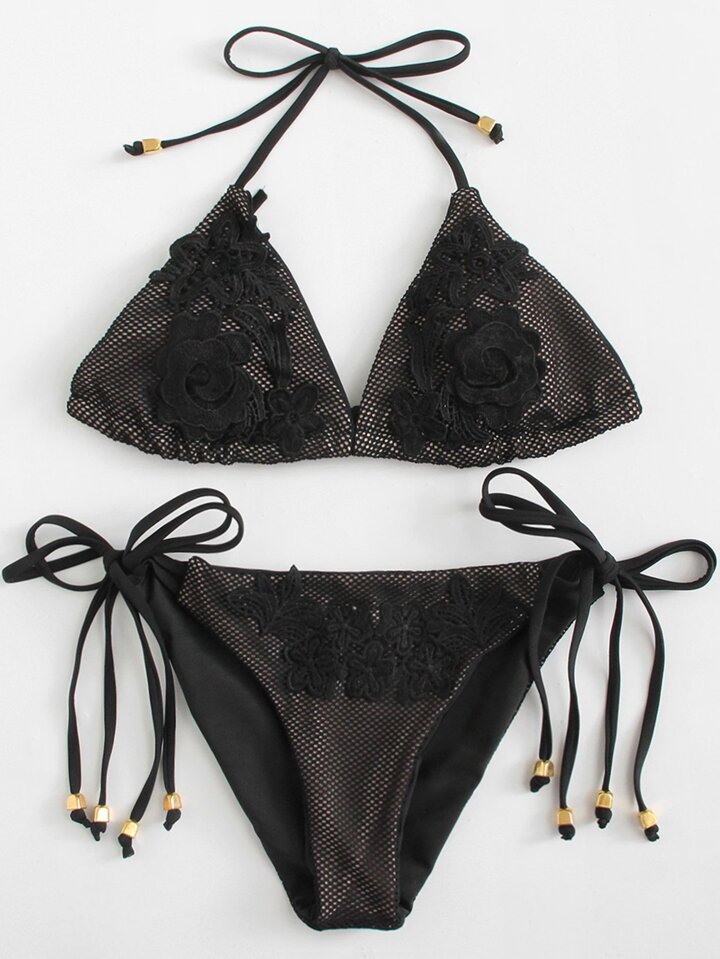 Crochet Lace Applique Bikini Set