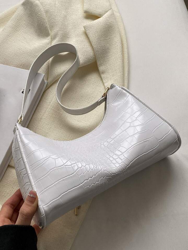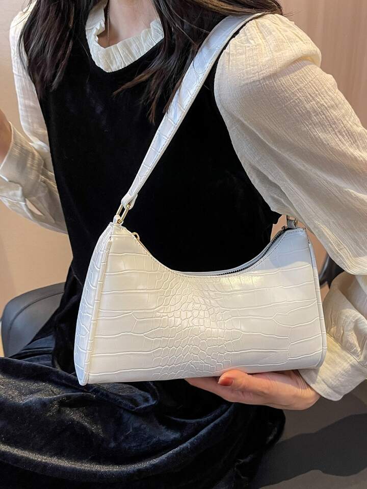 Crocodile Embossed Bag White Zipper Elegant For Daily Work