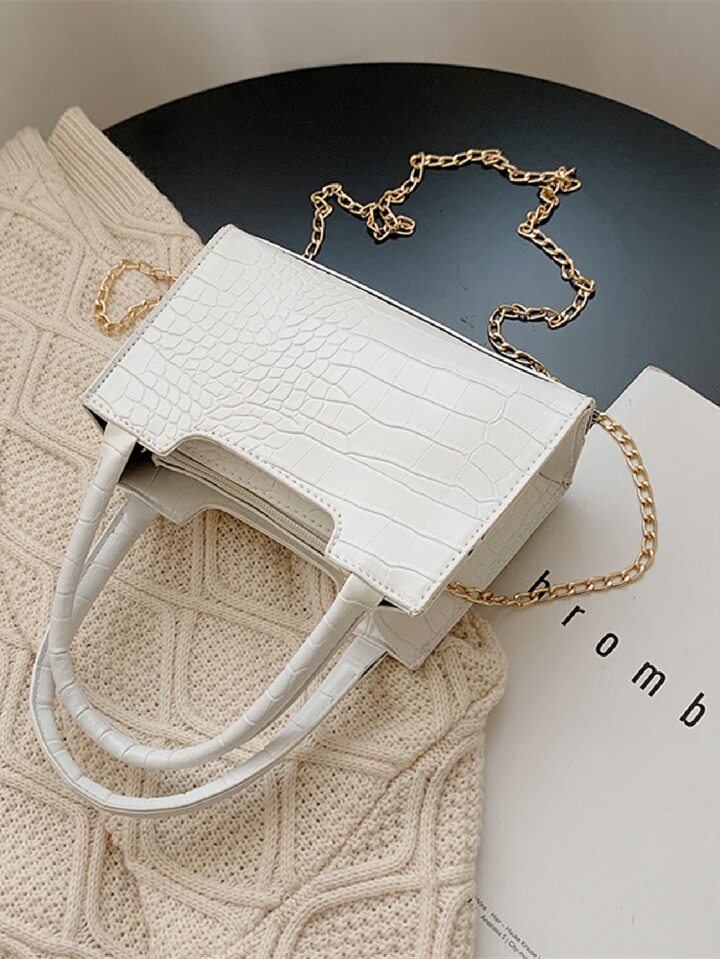 Crocodile Embossed Chain Satchel Bag