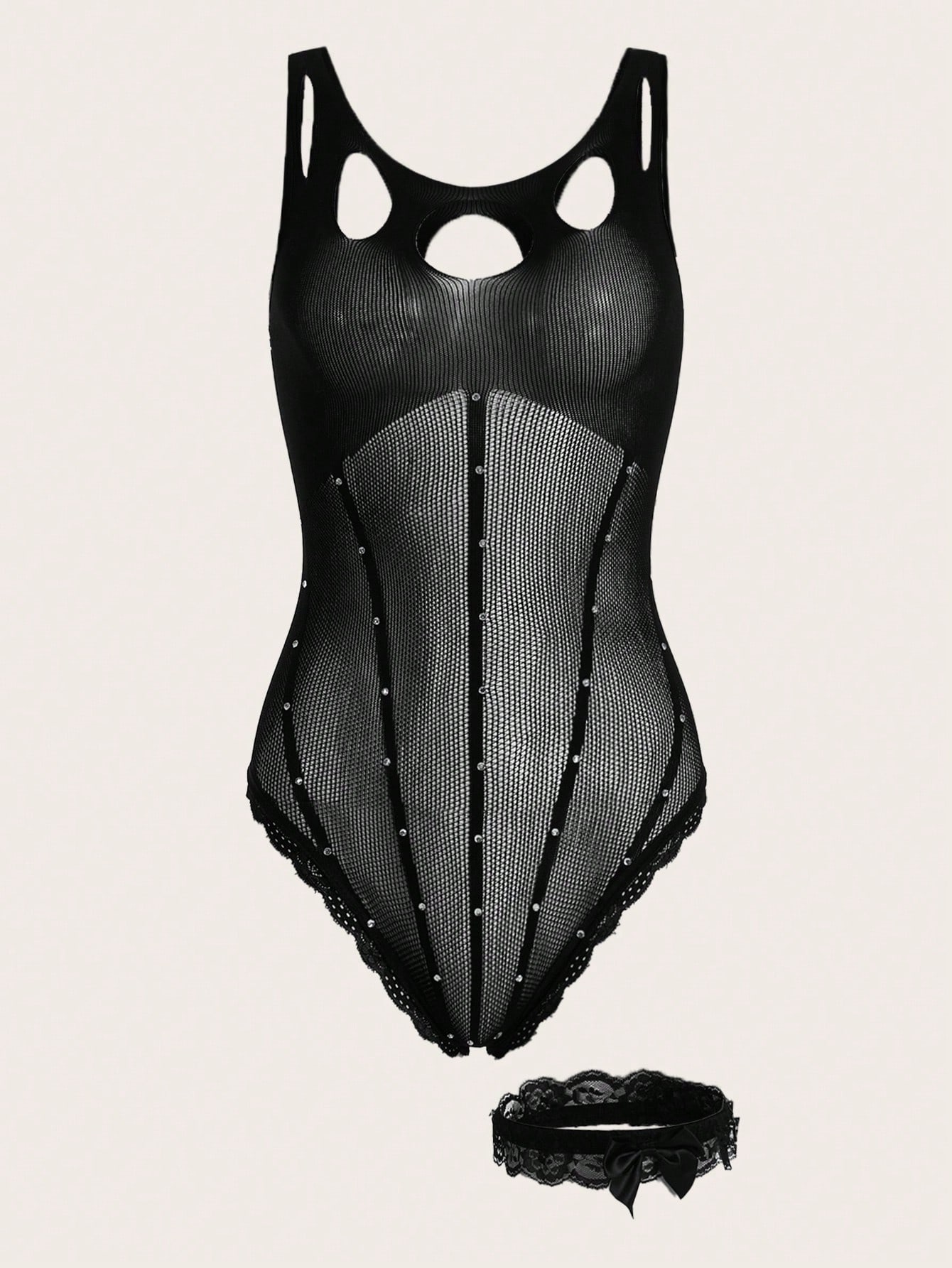 Cut Out Fishnet Teddy Bodysuit & Leg Ring