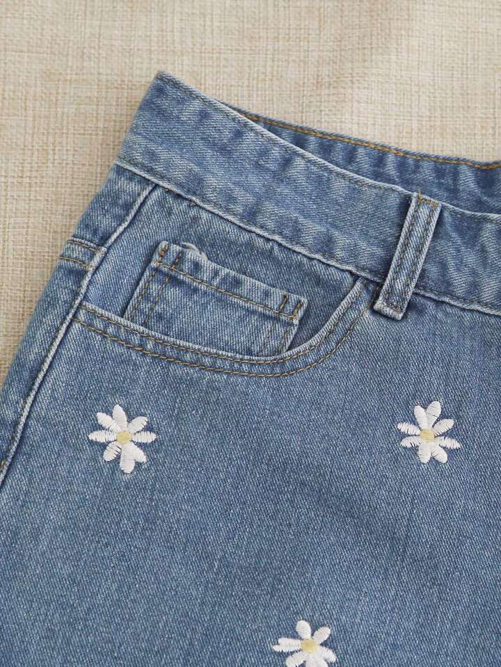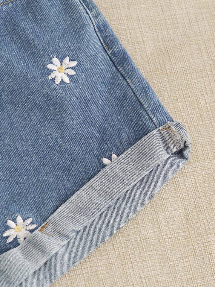 Daisy Embroidery Denim Shorts
