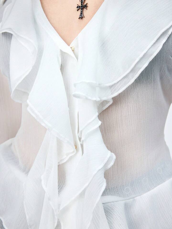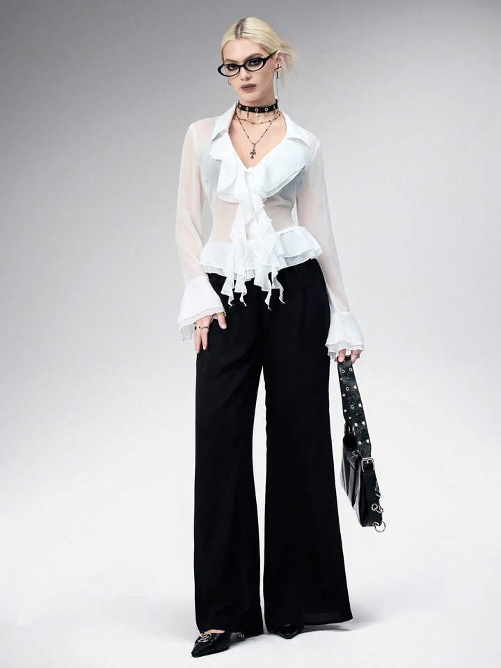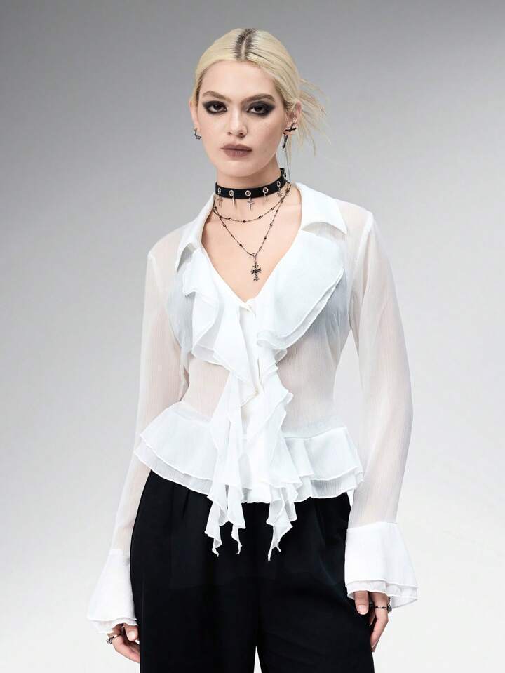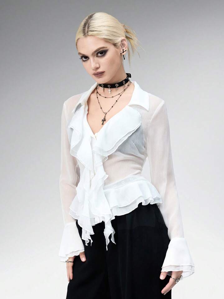 Dark Gothic Asymmetrical Ruffle Flare Sleeve Shirt