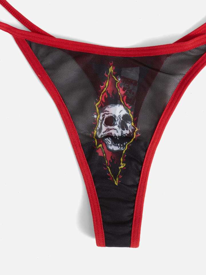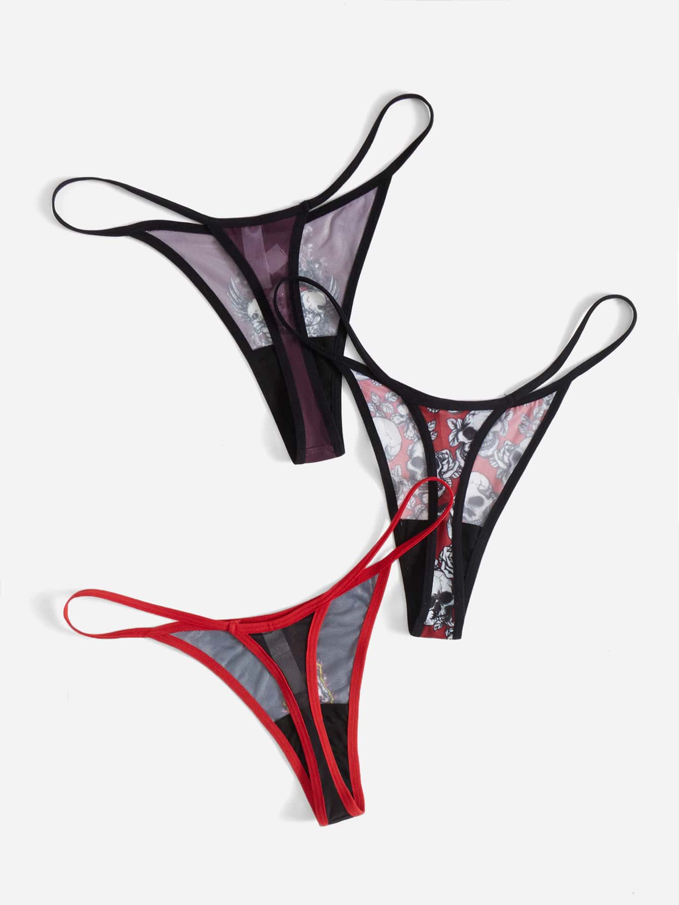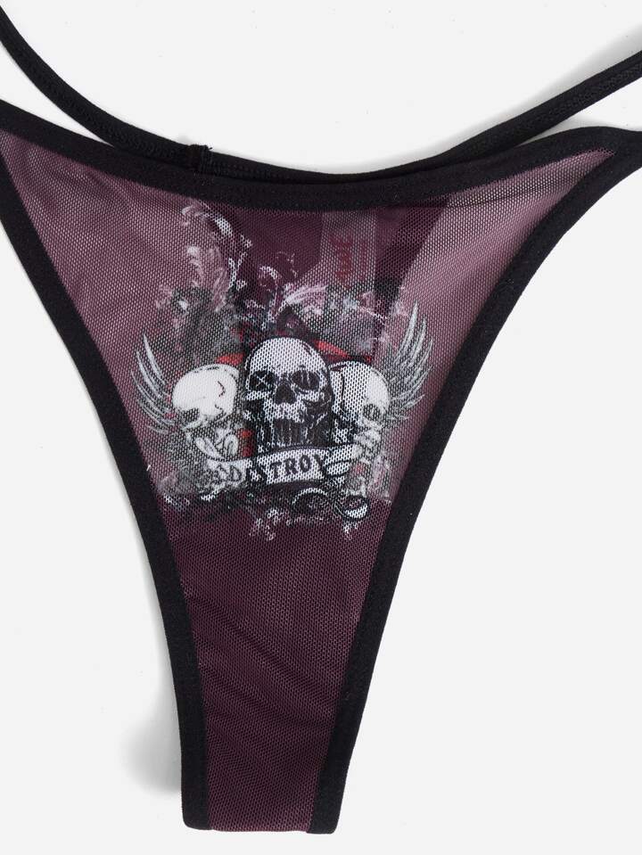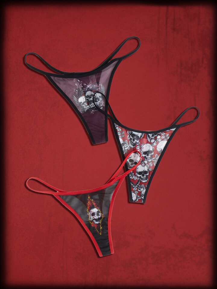Dhoni reza Grunge Punk 3pack Skull & Floral Print Panty Set