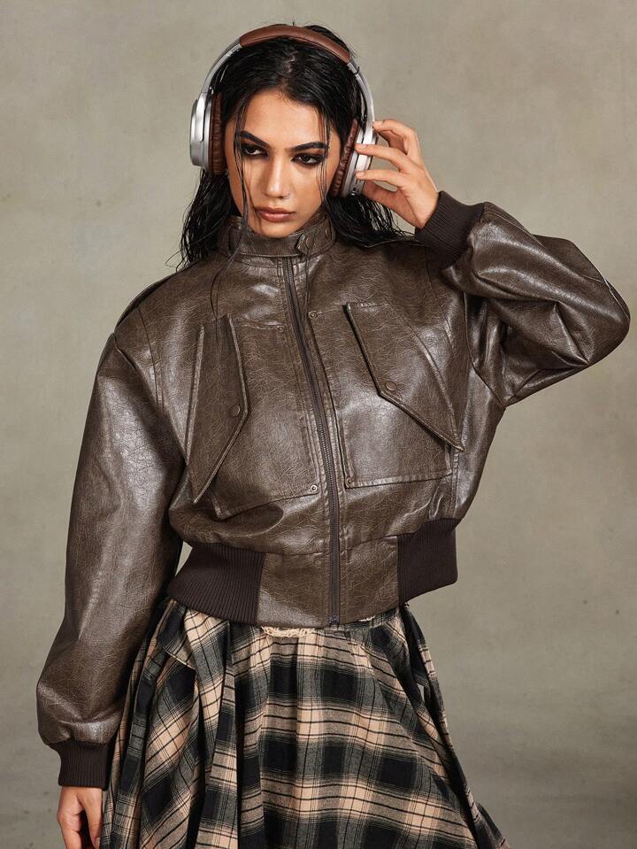 Distressed Vintage Washed Women Pu Leather Flight Bomber Jacket