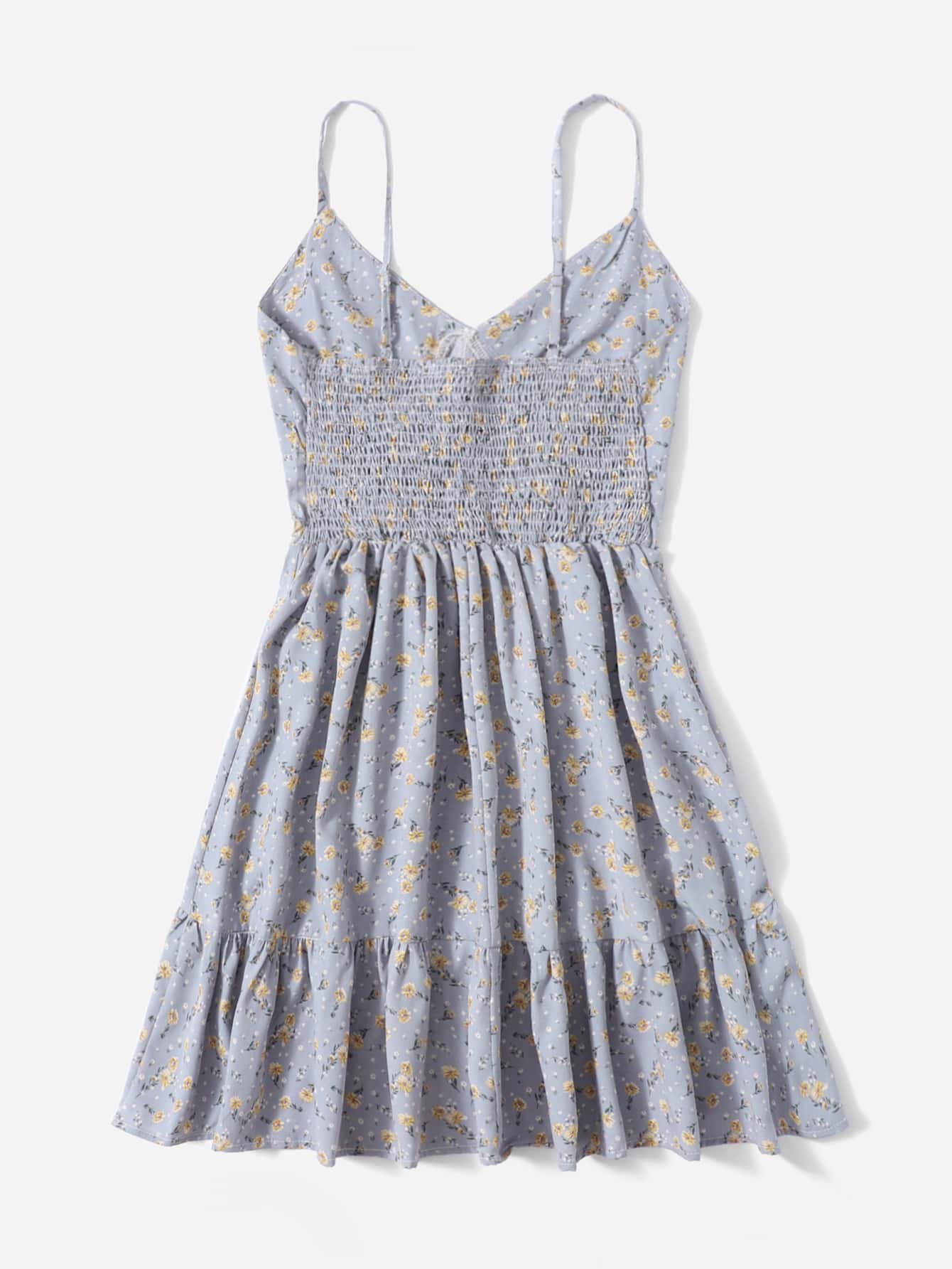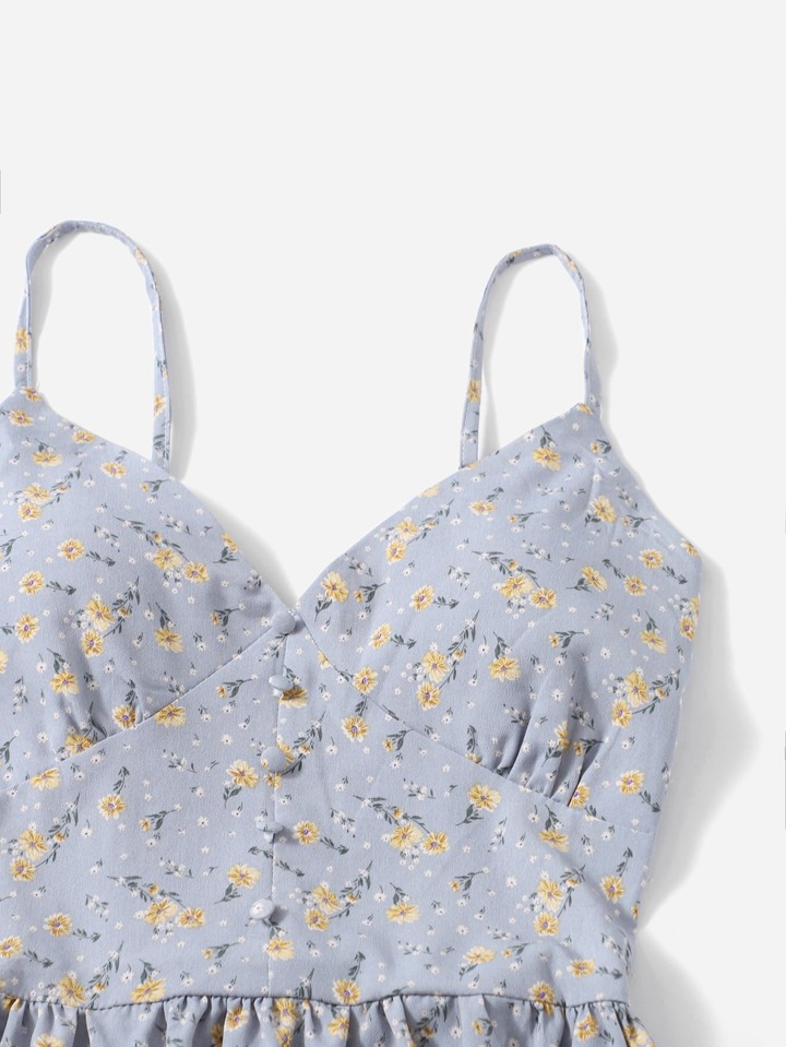 Ditsy Floral Button Shirred Ruffle Hem Cami Dress