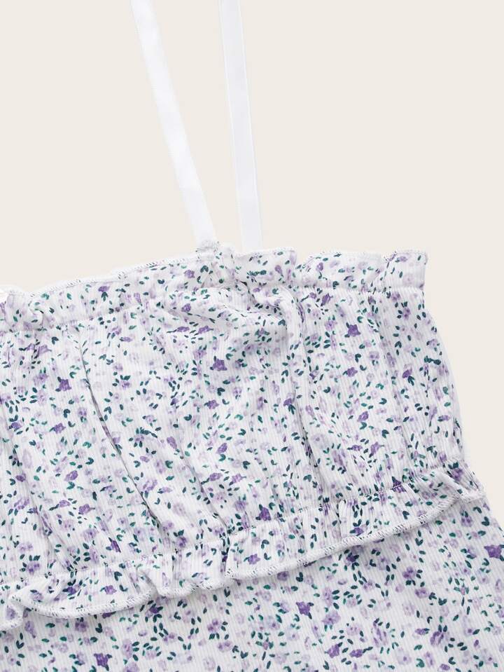 Ditsy Floral Frill Tie Shoulder Cami Dress