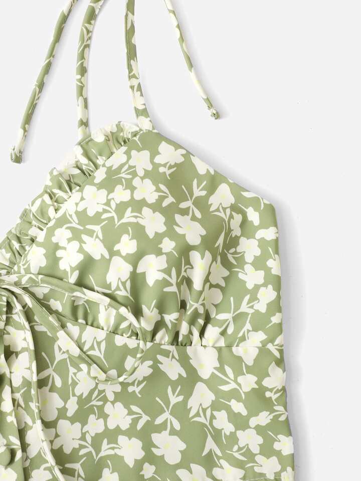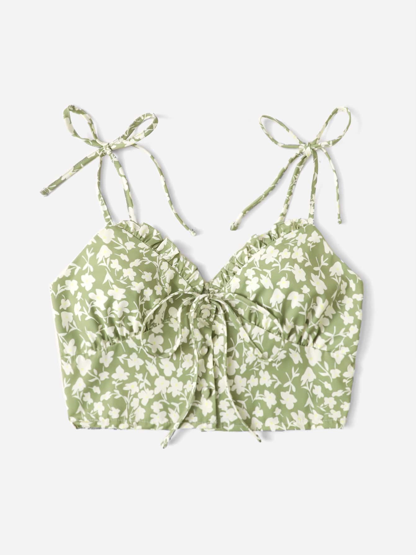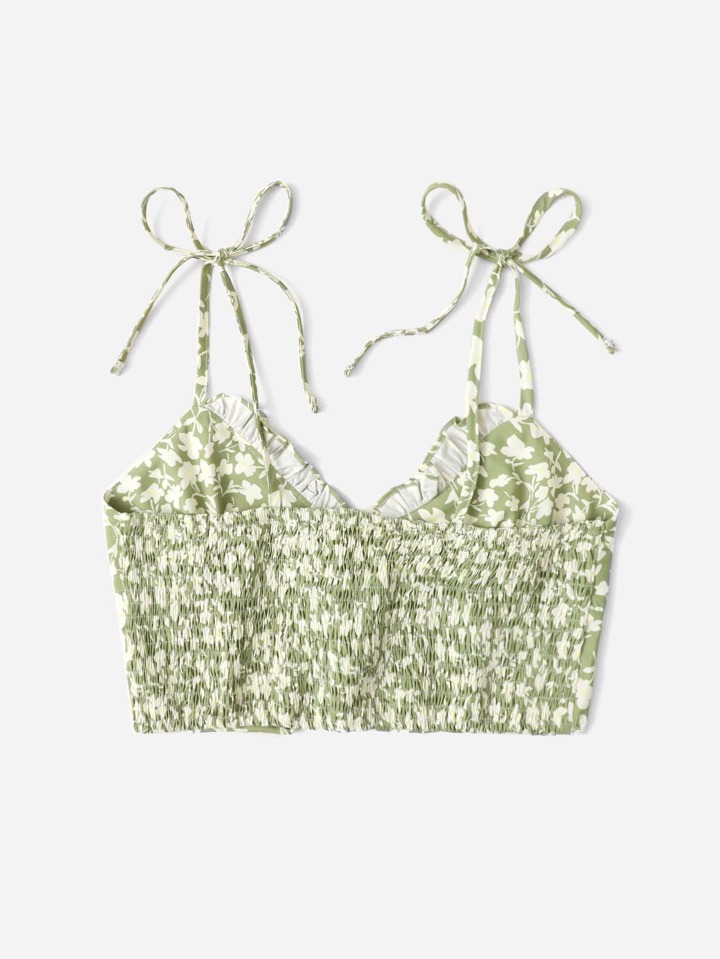 Ditsy Floral Frill Trim Tie Shoulder Shirred Cami Top