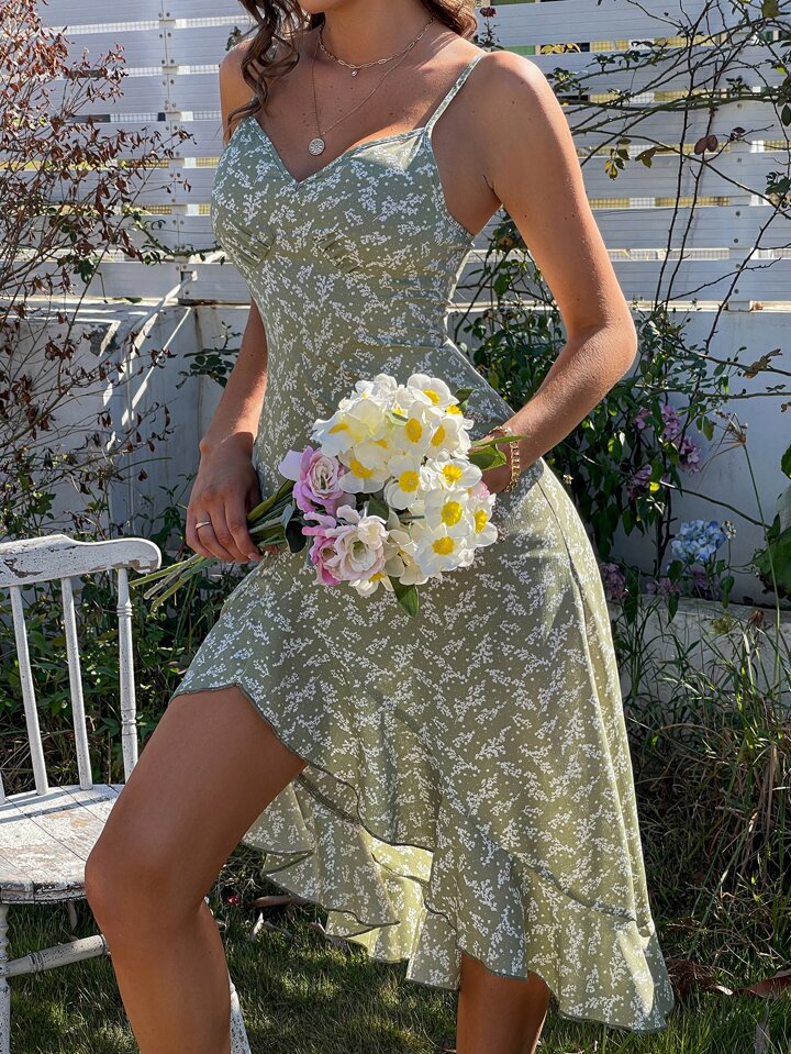 Ditsy Floral High Low Ruffle Hem Cami Dress
