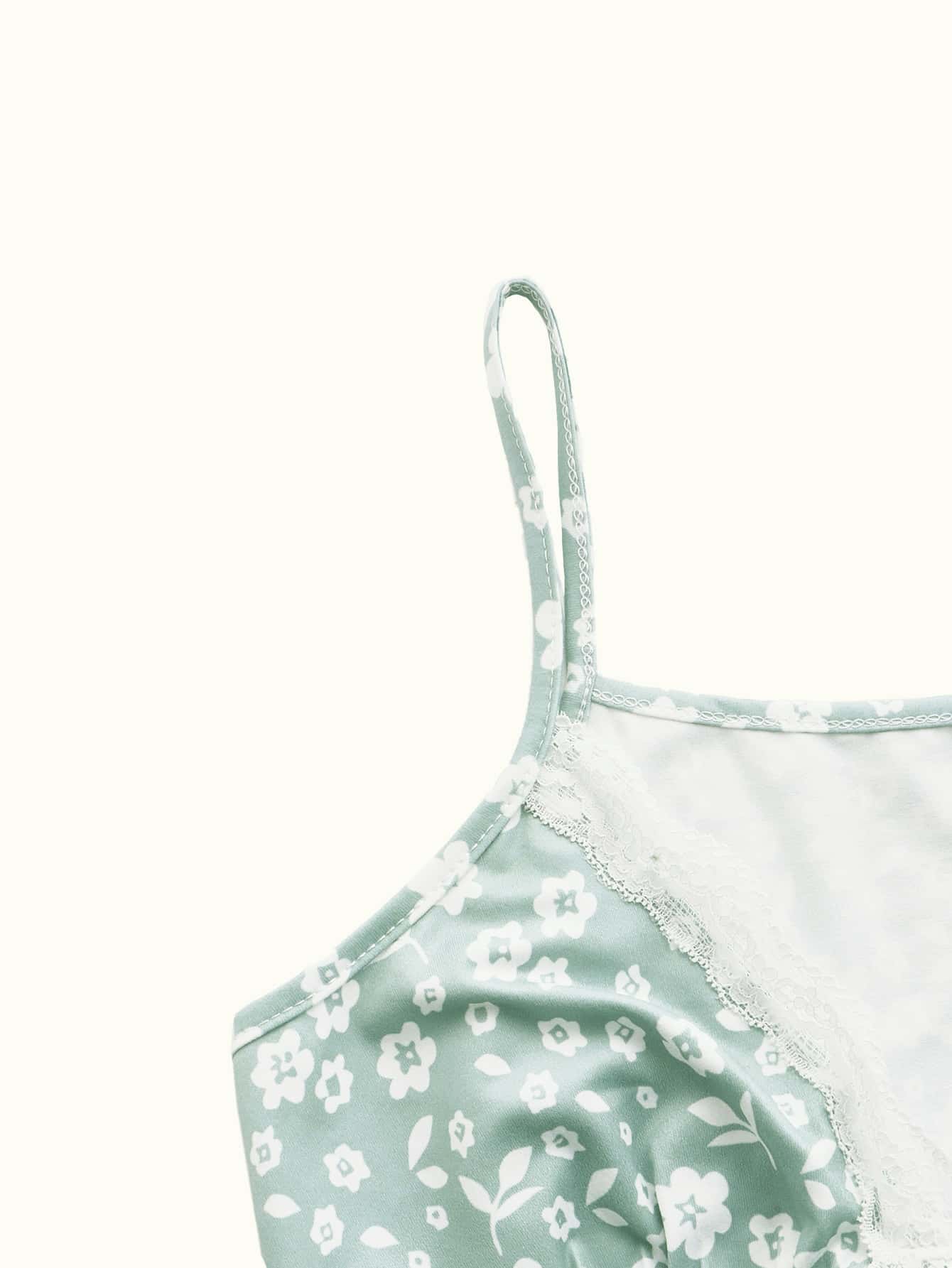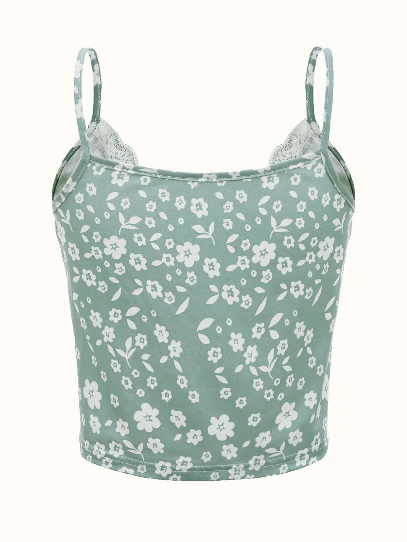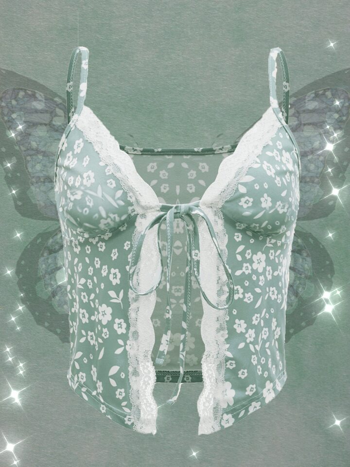 Ditsy Floral Lace Trim Tie Front Cami Top