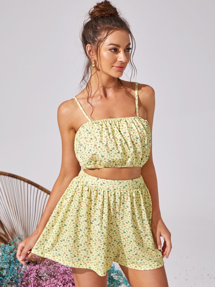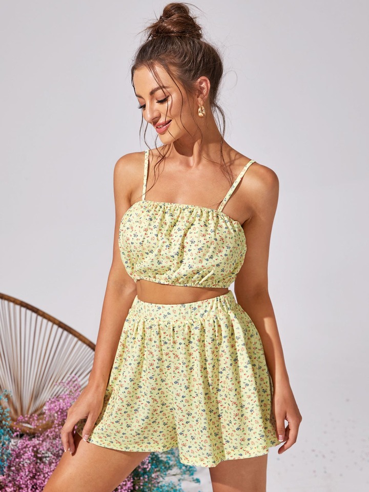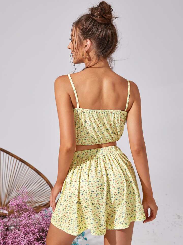 Ditsy Floral Print Crop Cami Top & Skirt Set