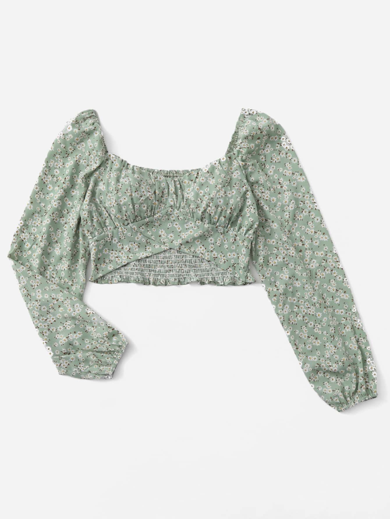 Ditsy Floral Shirred Bishop Sleeve Blouse