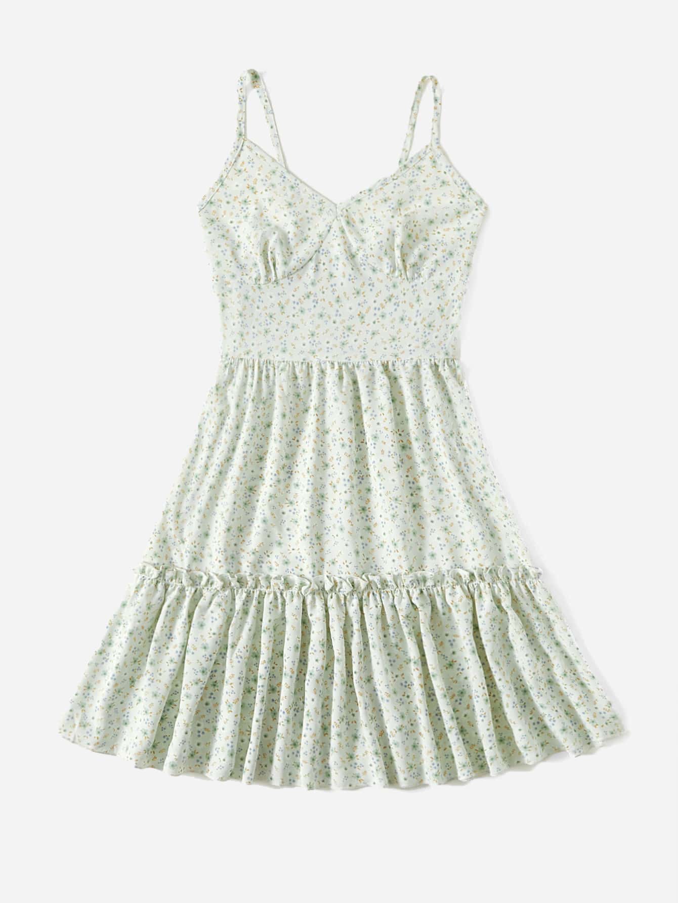 Ditsy Floral Shirred Ruffle Hem Cami Dress