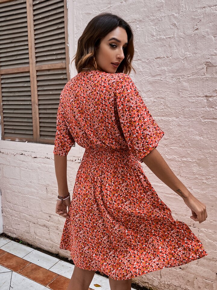 Ditsy Floral Shirred Waist Dress