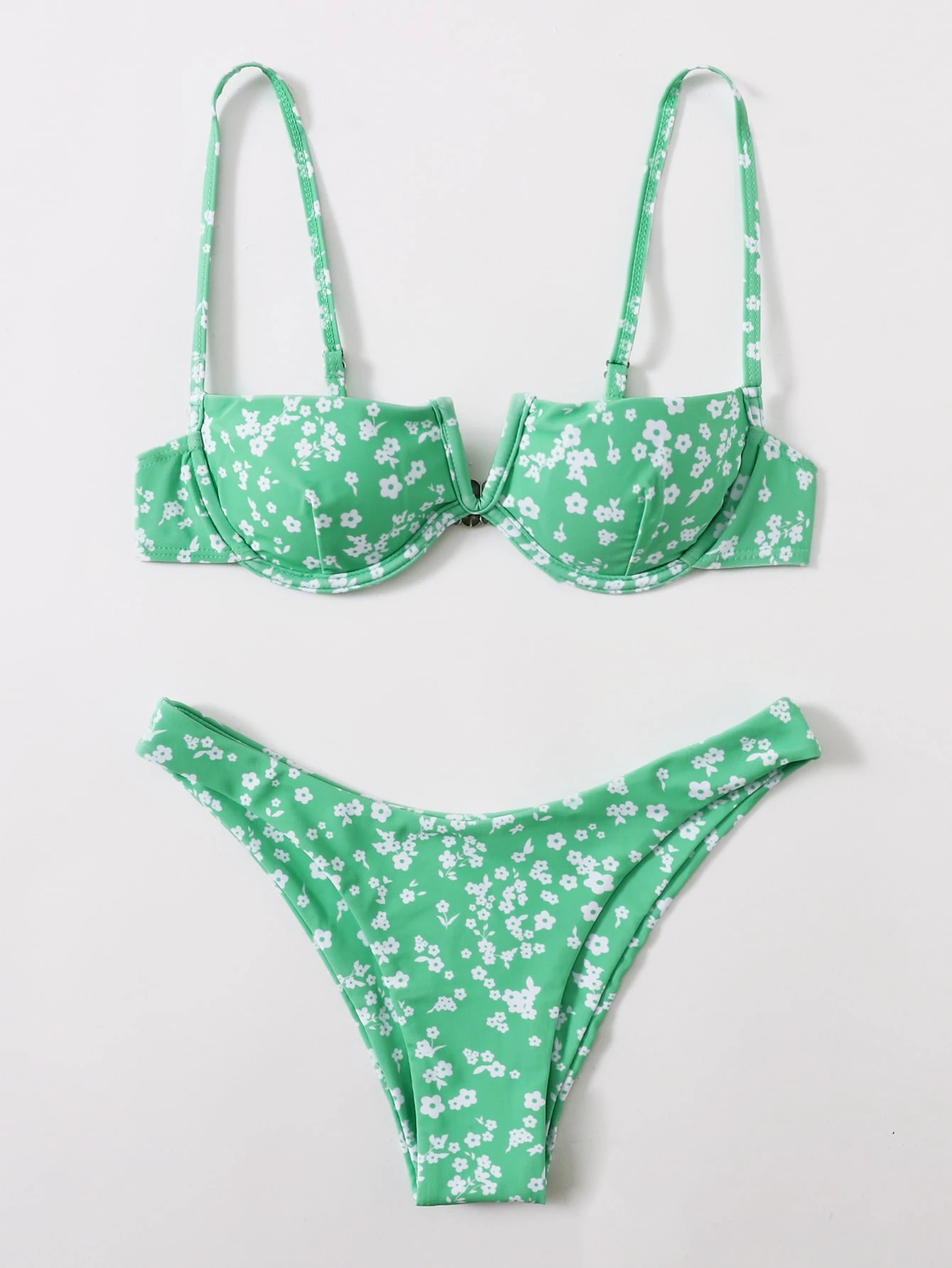 Ditsy Floral V Wired High Cut Bikini Set Summer Beach