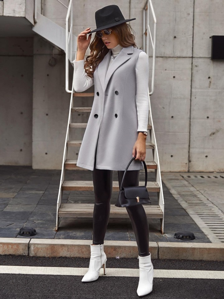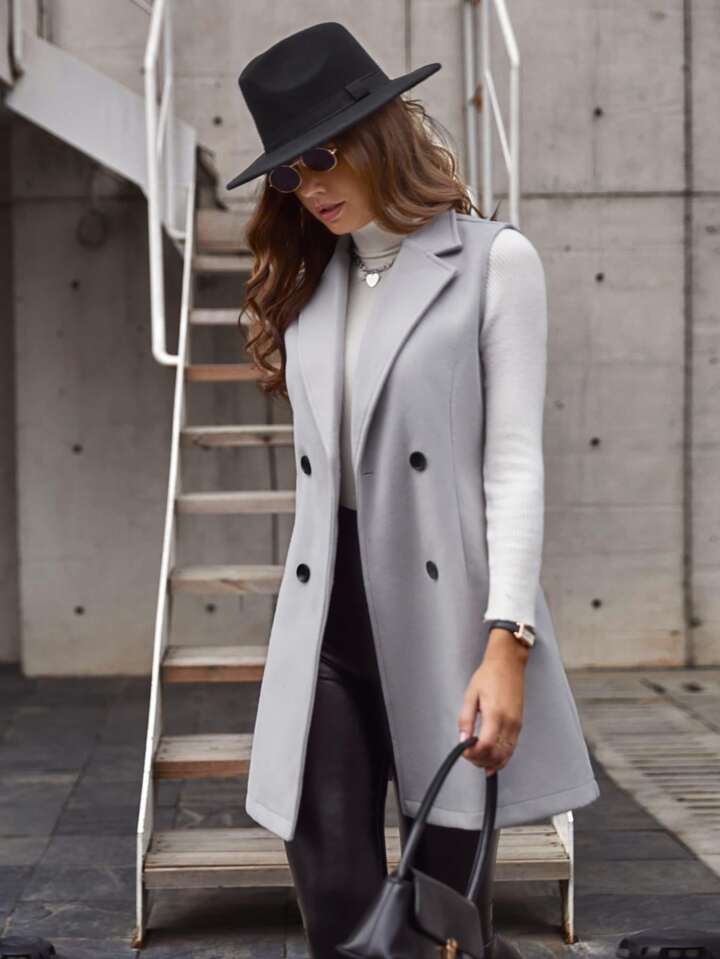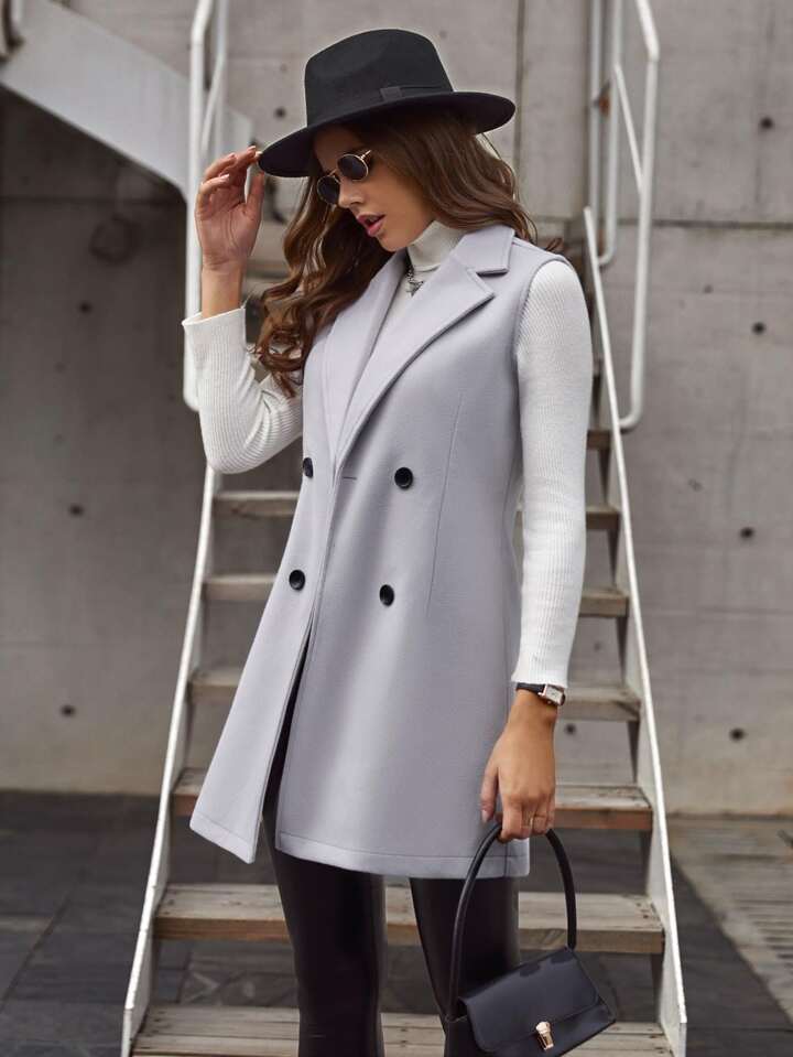 Double-breasted Lapel Neck Sleeveless Coat