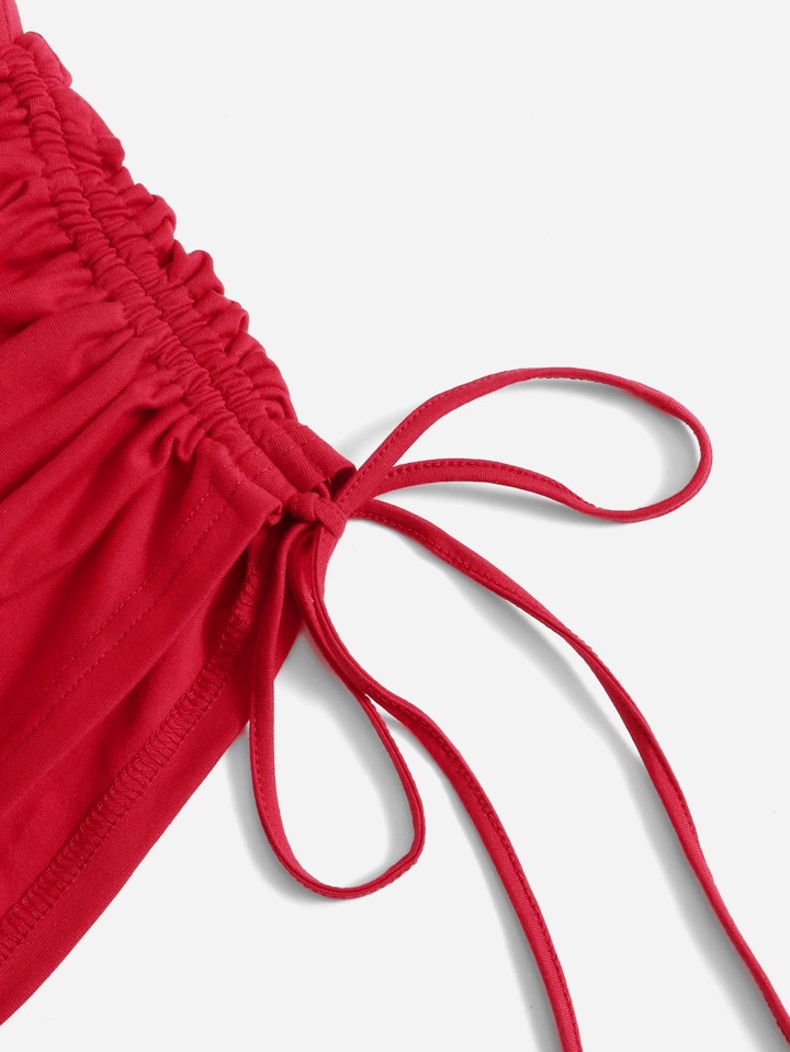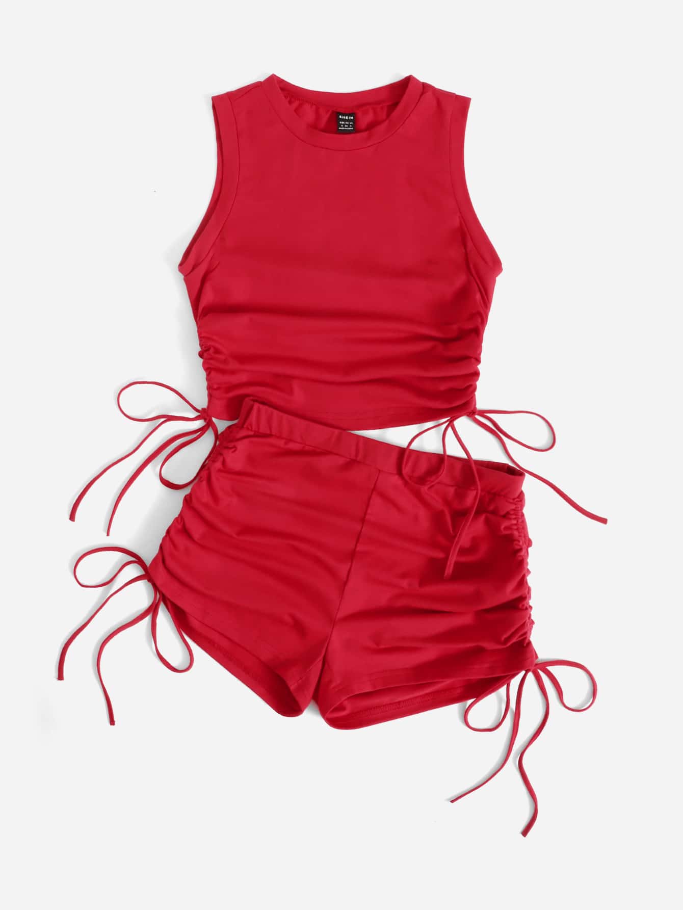 Drawstring Ruched Side Crop Tank Top & Shorts Set