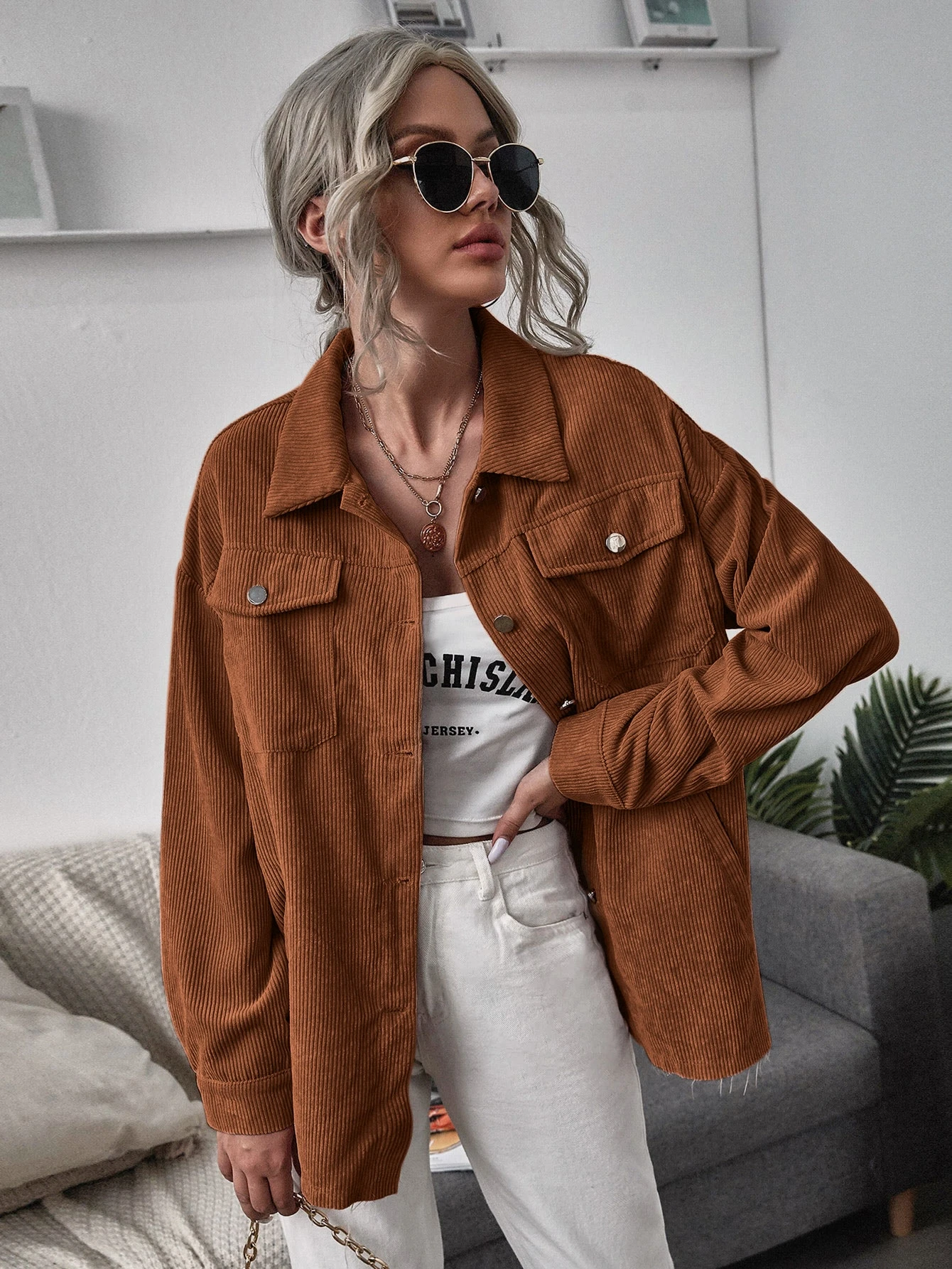 Drop Shoulder Corduroy Coat