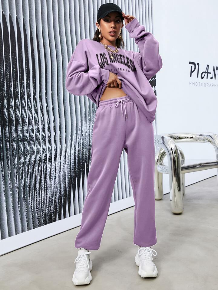 Drop Shoulder Letter Graphic Sweatshirt & Sweatpants
