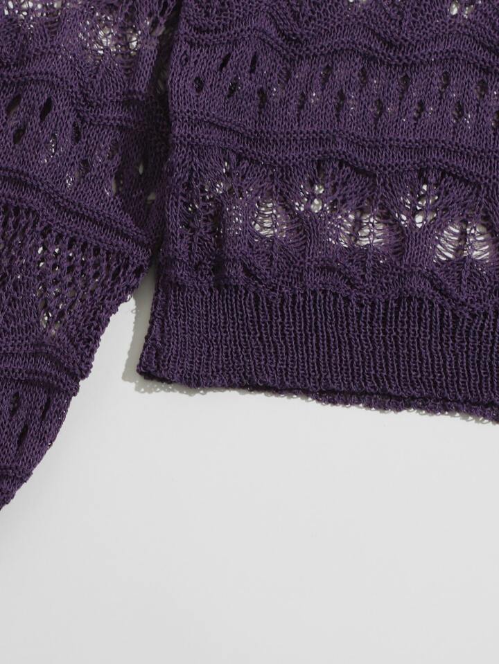 Drop Shoulder Open Knit Sweater