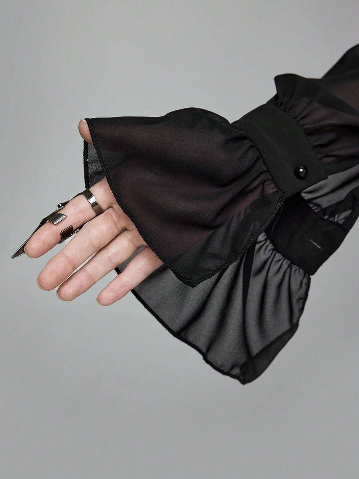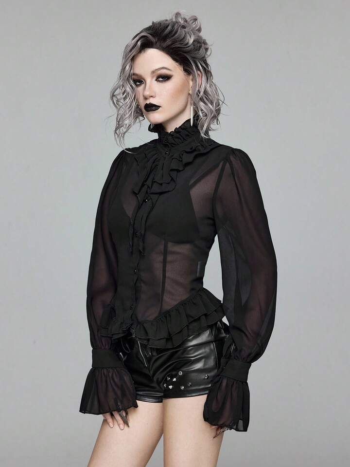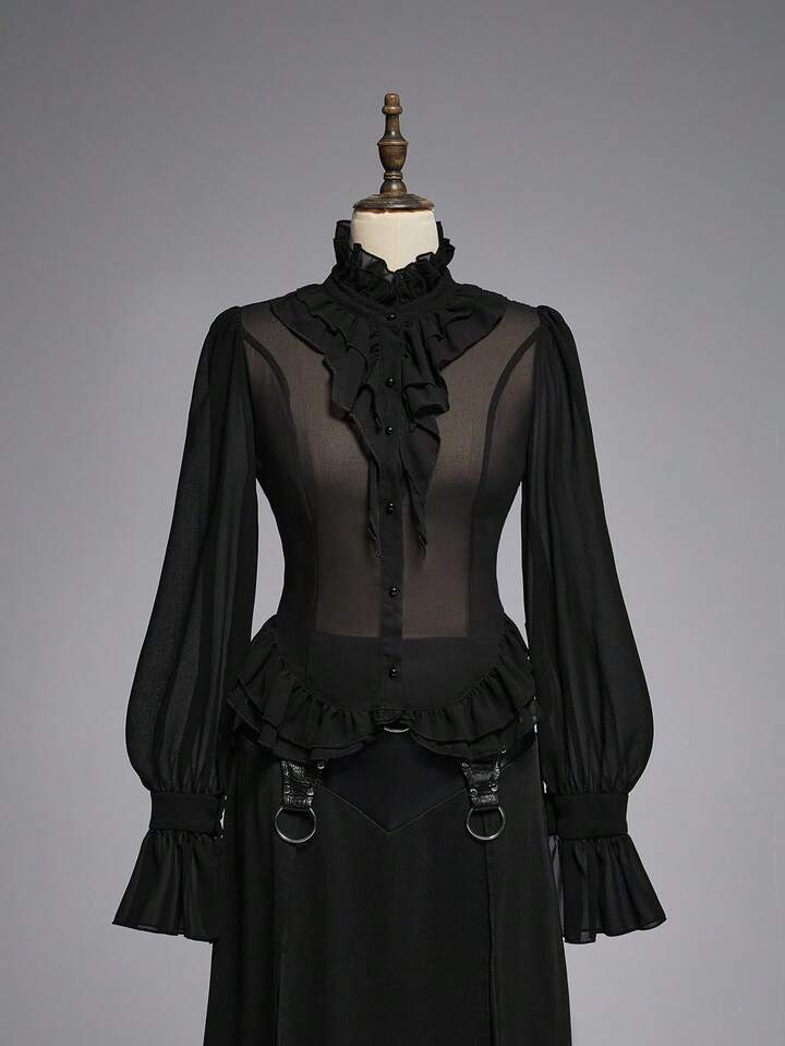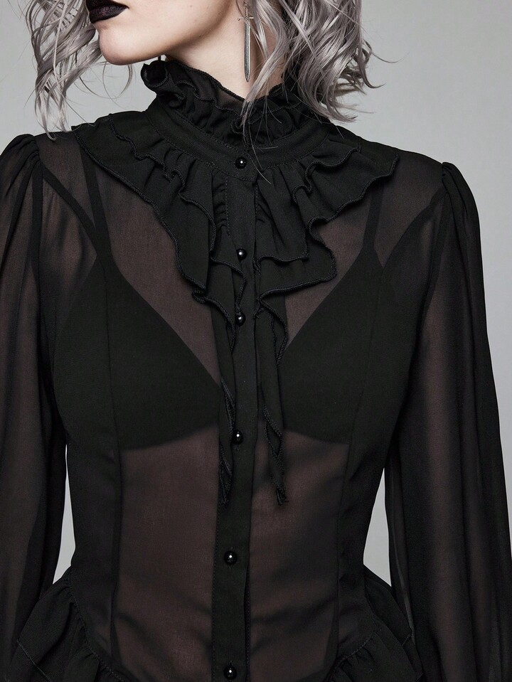 EDITION Gothic Medieval Palace Style Sheer Shirt With Mandarin Collar